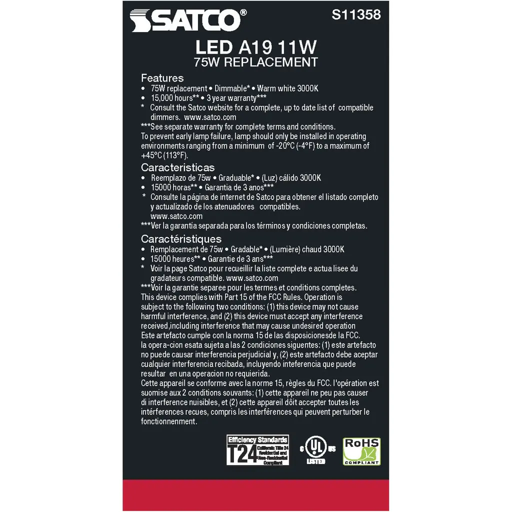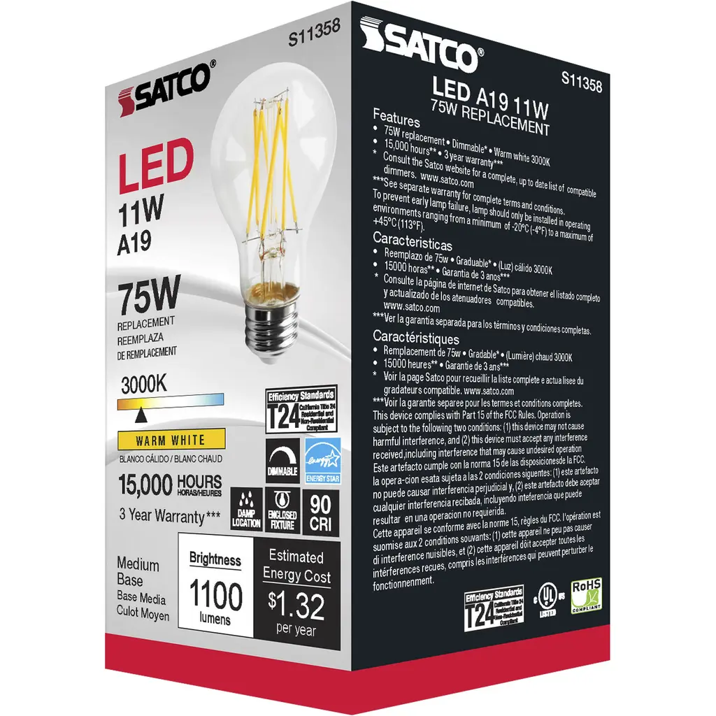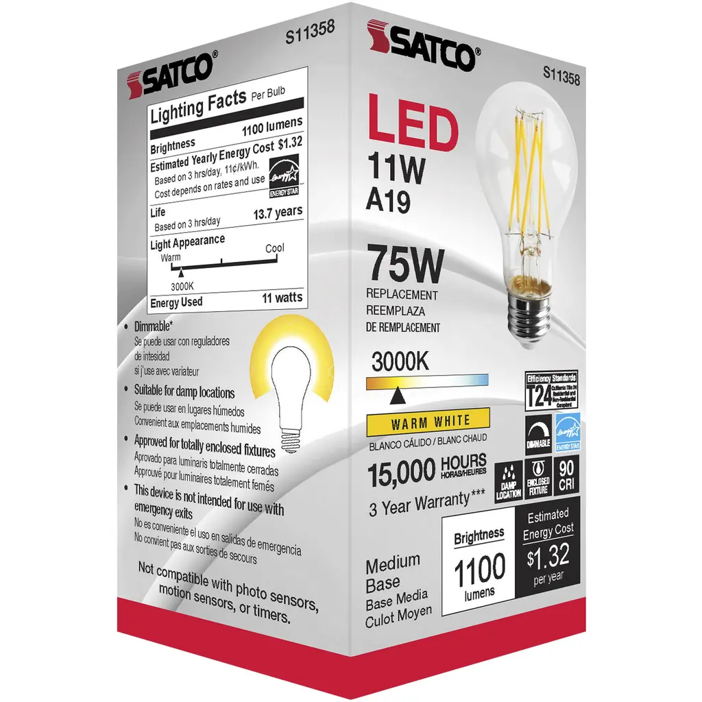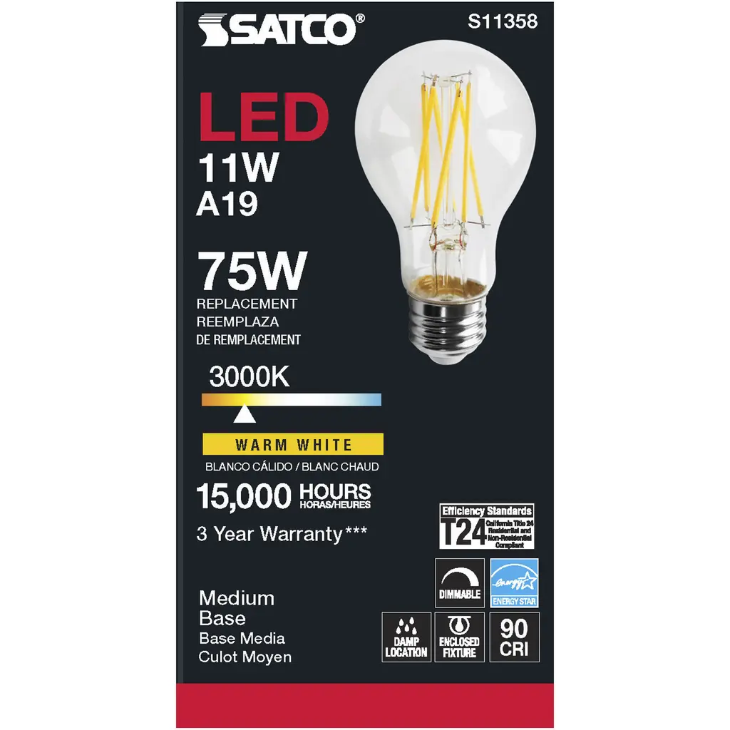 11 Watt A19 LED Lamp - Clear 3000K Medium Base 120 Volts