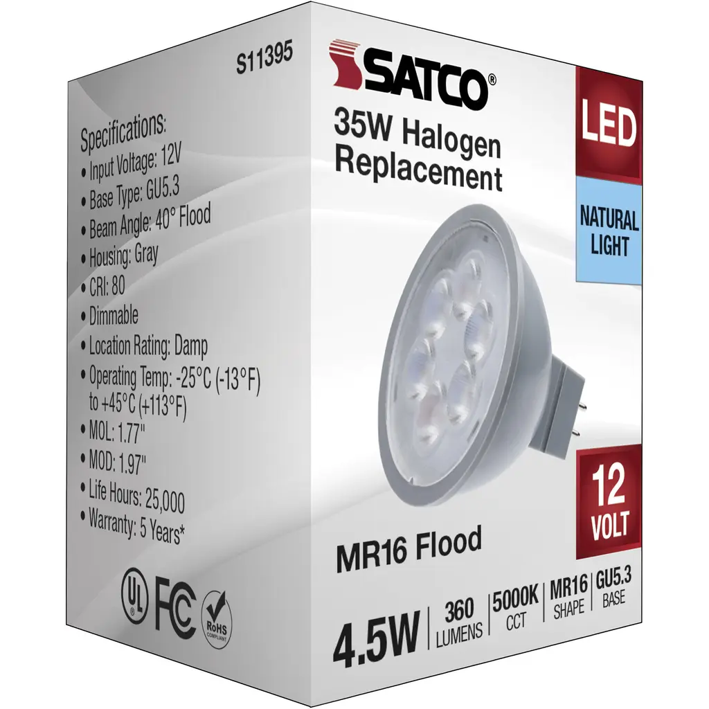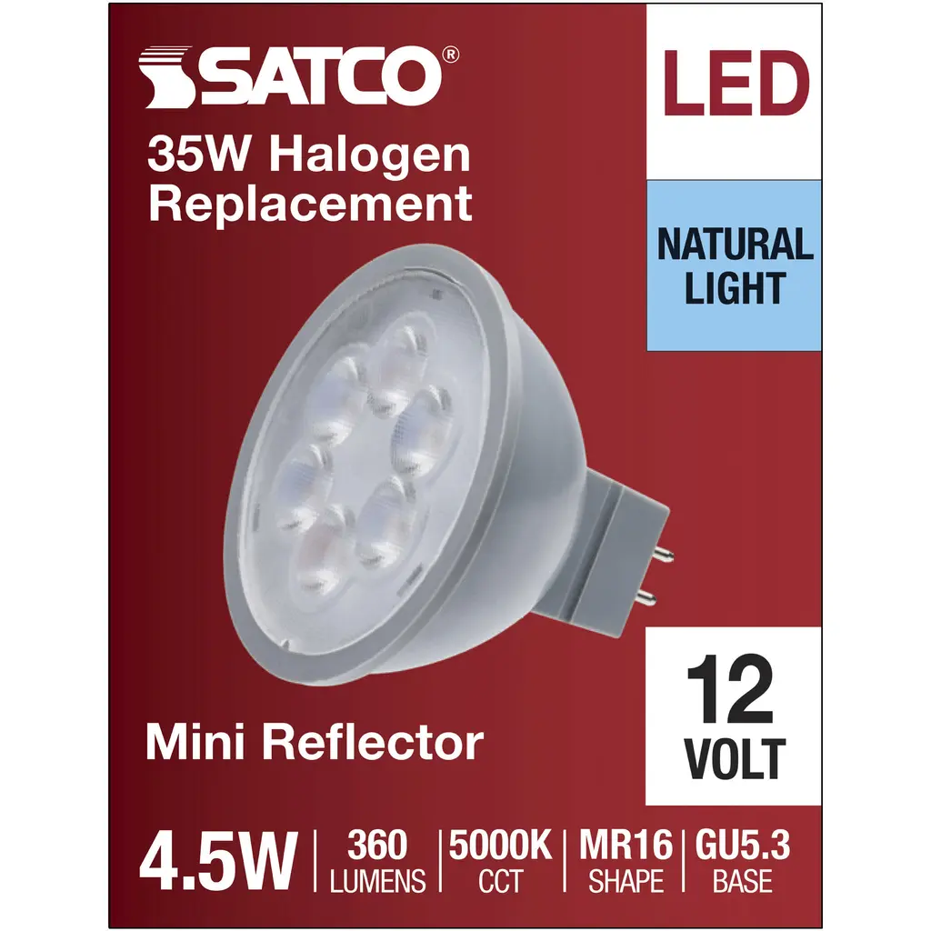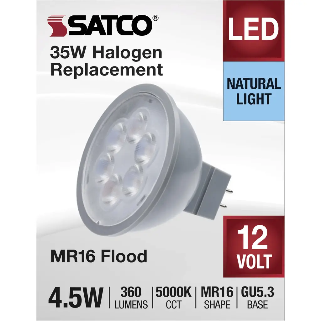 4.5 Watt MR16 LED; Silver Finish; 5000K; GU5.3 Base; 360 Lumens; 12 Volt