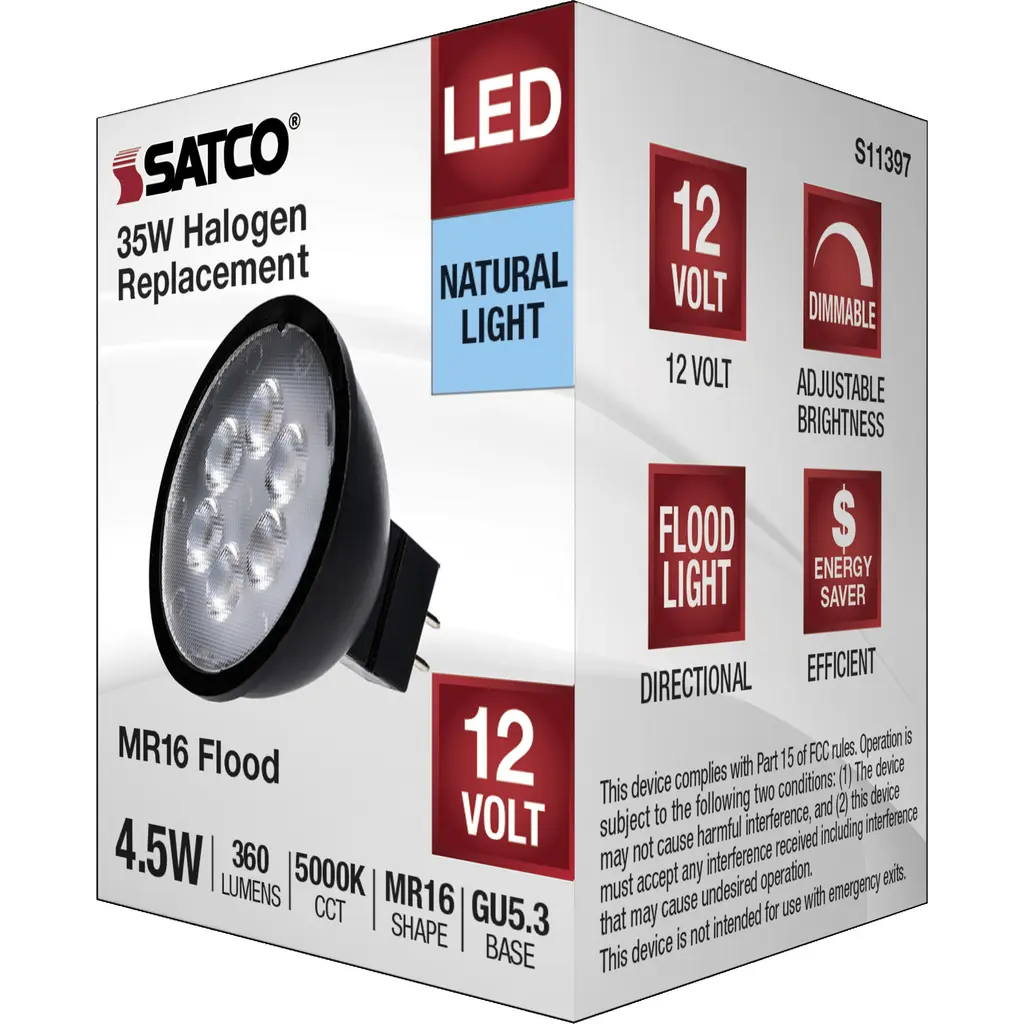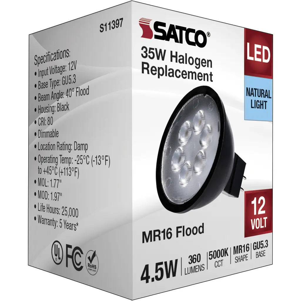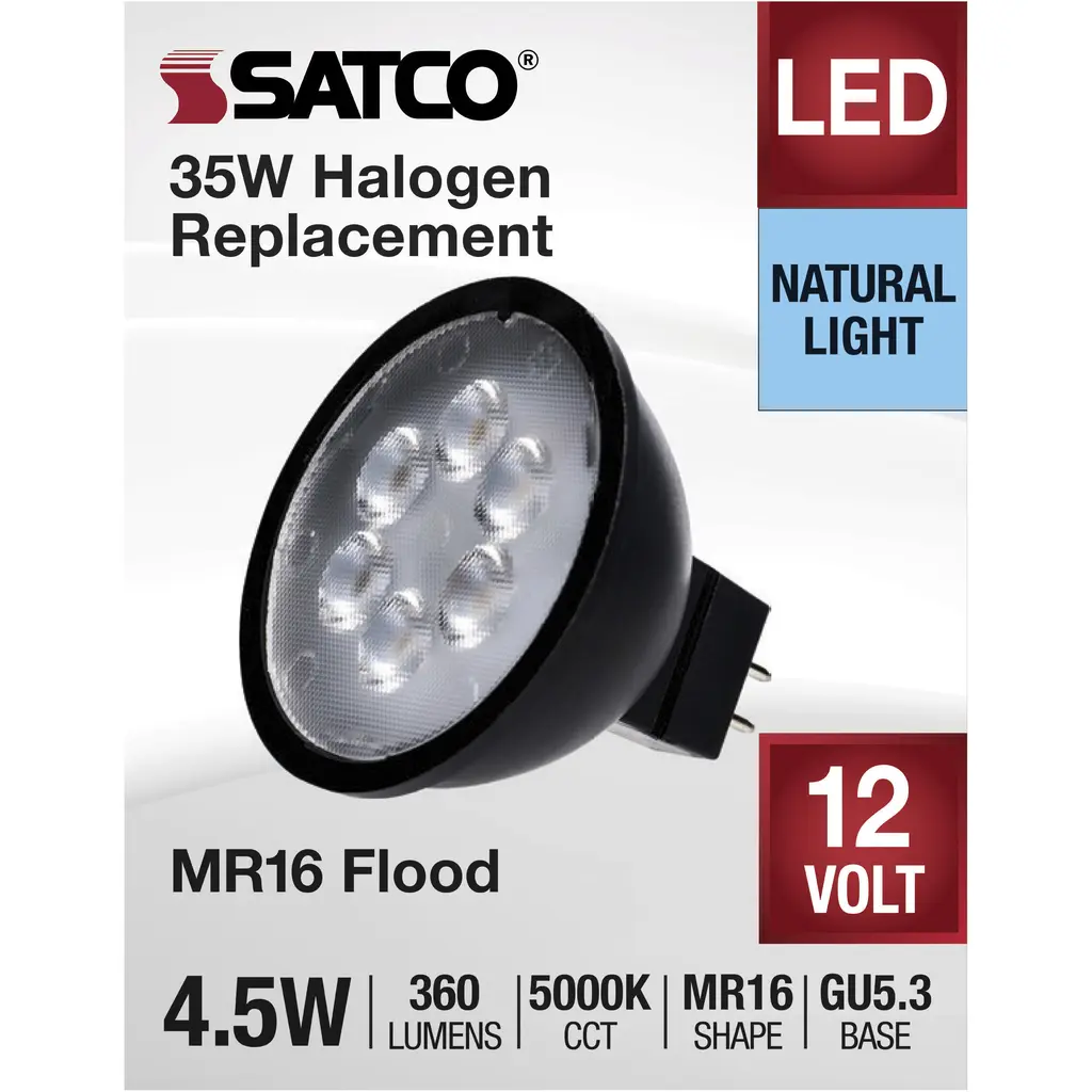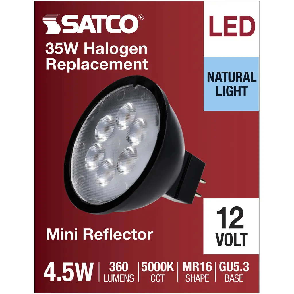 4.5 Watt MR16 LED; Black Finish; 5000K; GU5.3 Base; 360 Lumens; 12 Volt