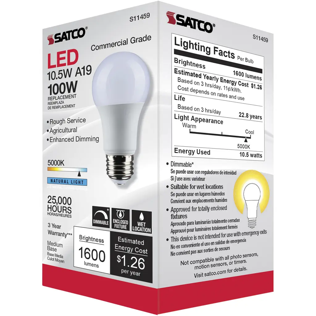 10.5 Watt; A19 LED; Dimmable Agriculture Bulb; 5000K; 120 Volt