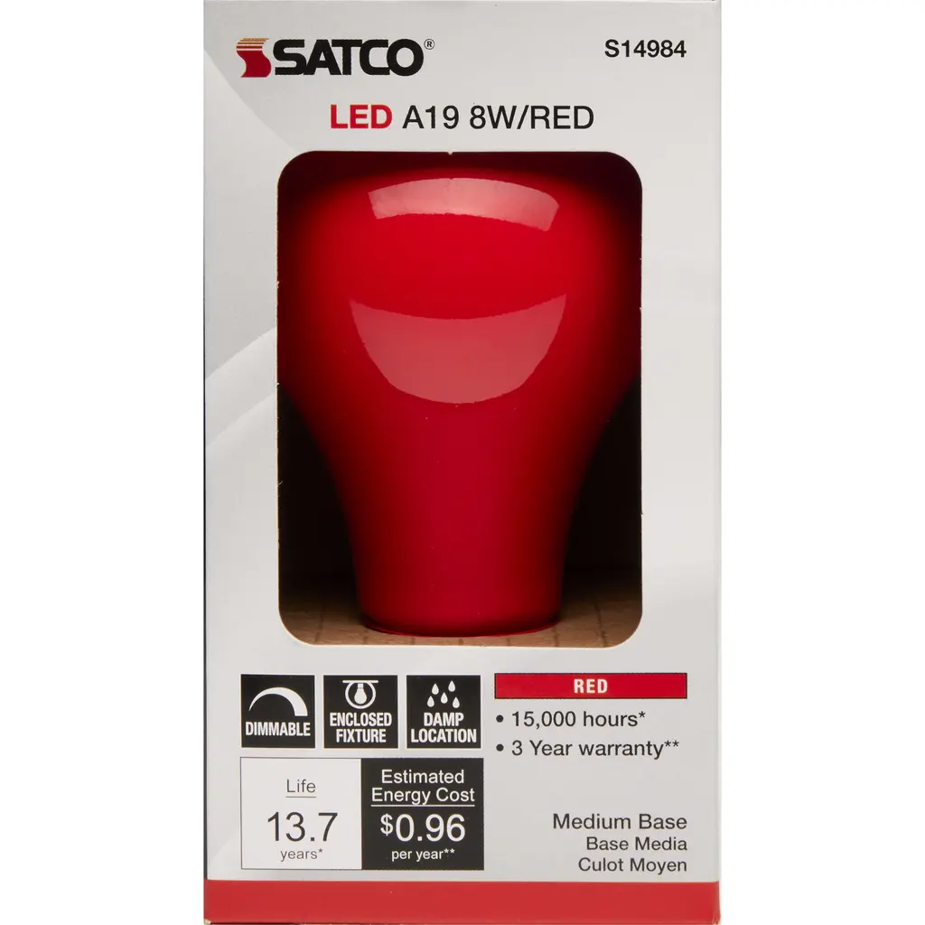 8W A19 LED; Ceramic Red; Medium base; 360 deg. beam spread; 120V