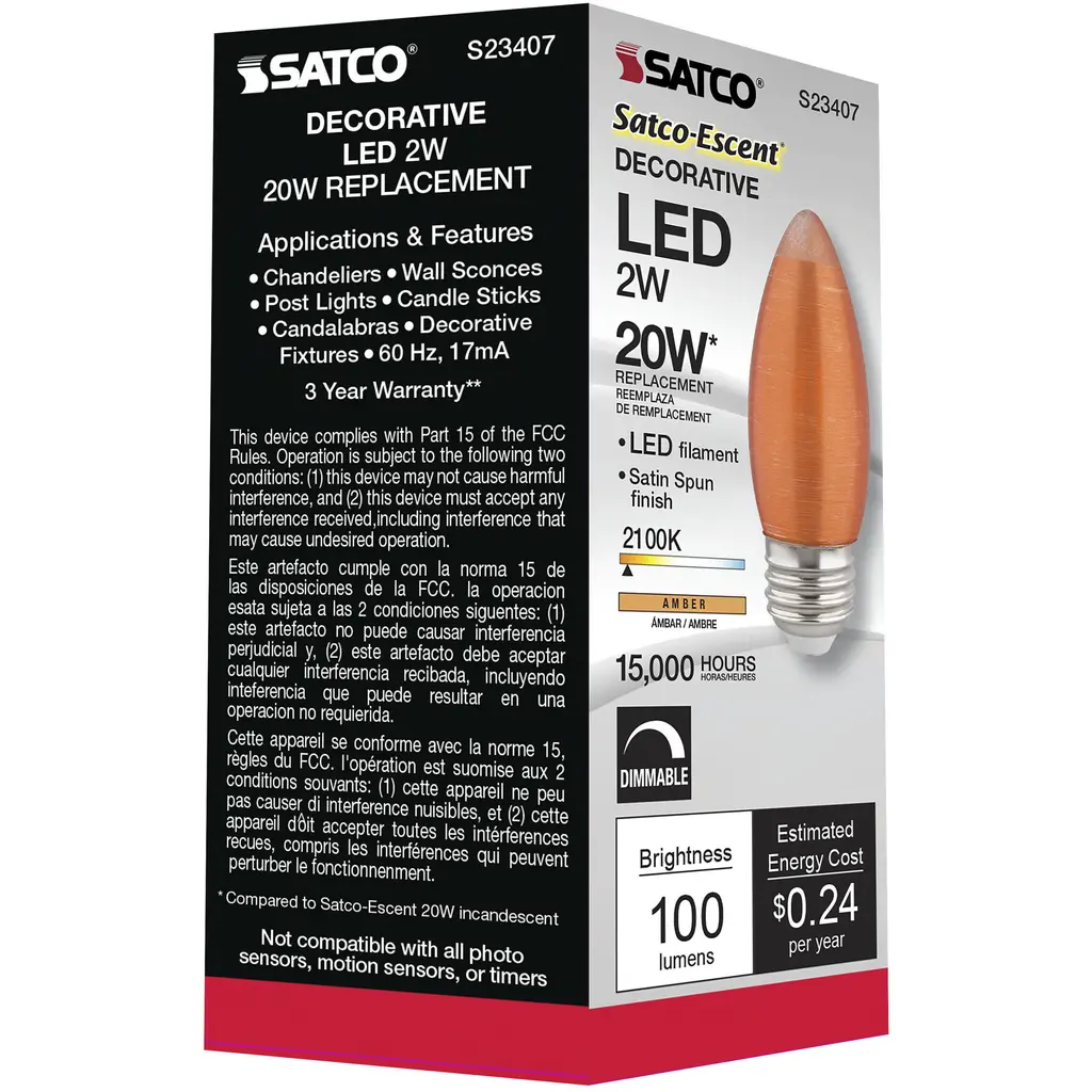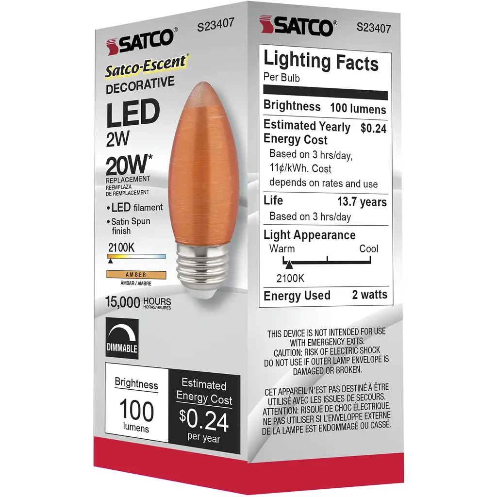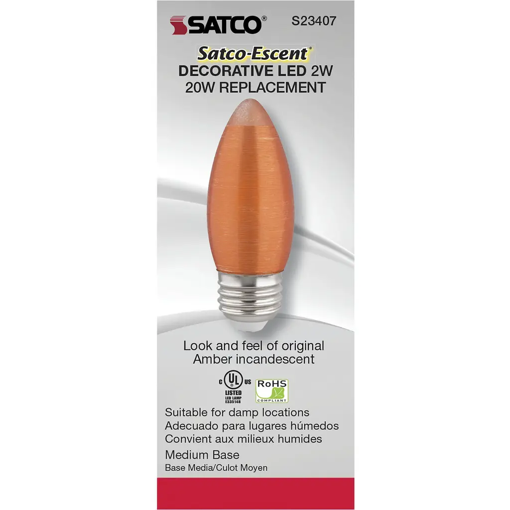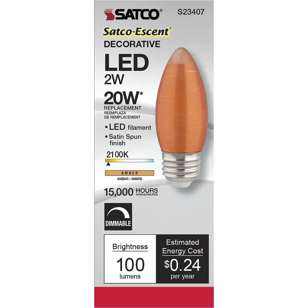 2W C11 LED; Satin Spun; Amber; Medium base; 2100K; 100 Lumens; 120V