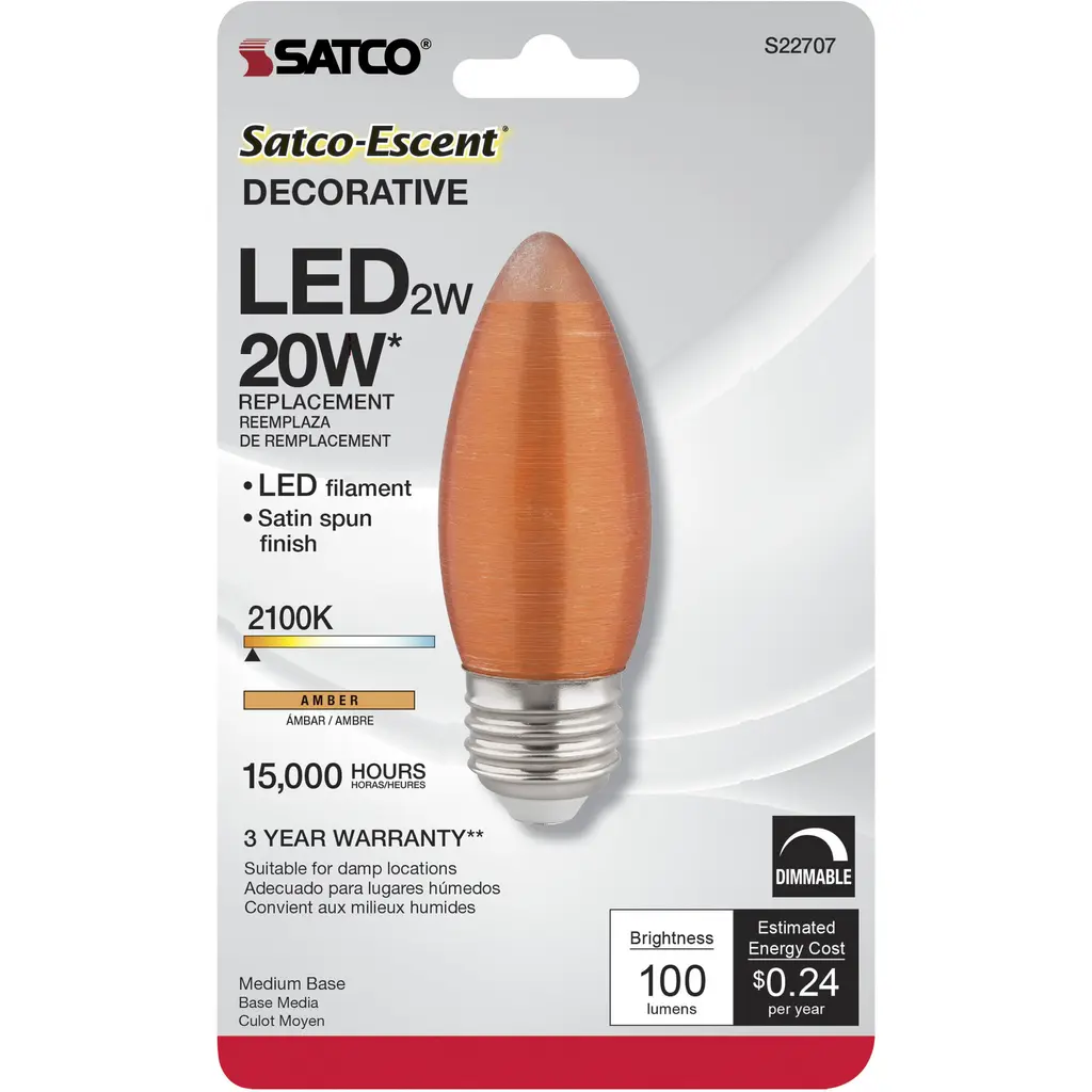 2W C11 LED; Satin Spun; Amber; Medium base; 2100K; 100 Lumens; 120V; Carded