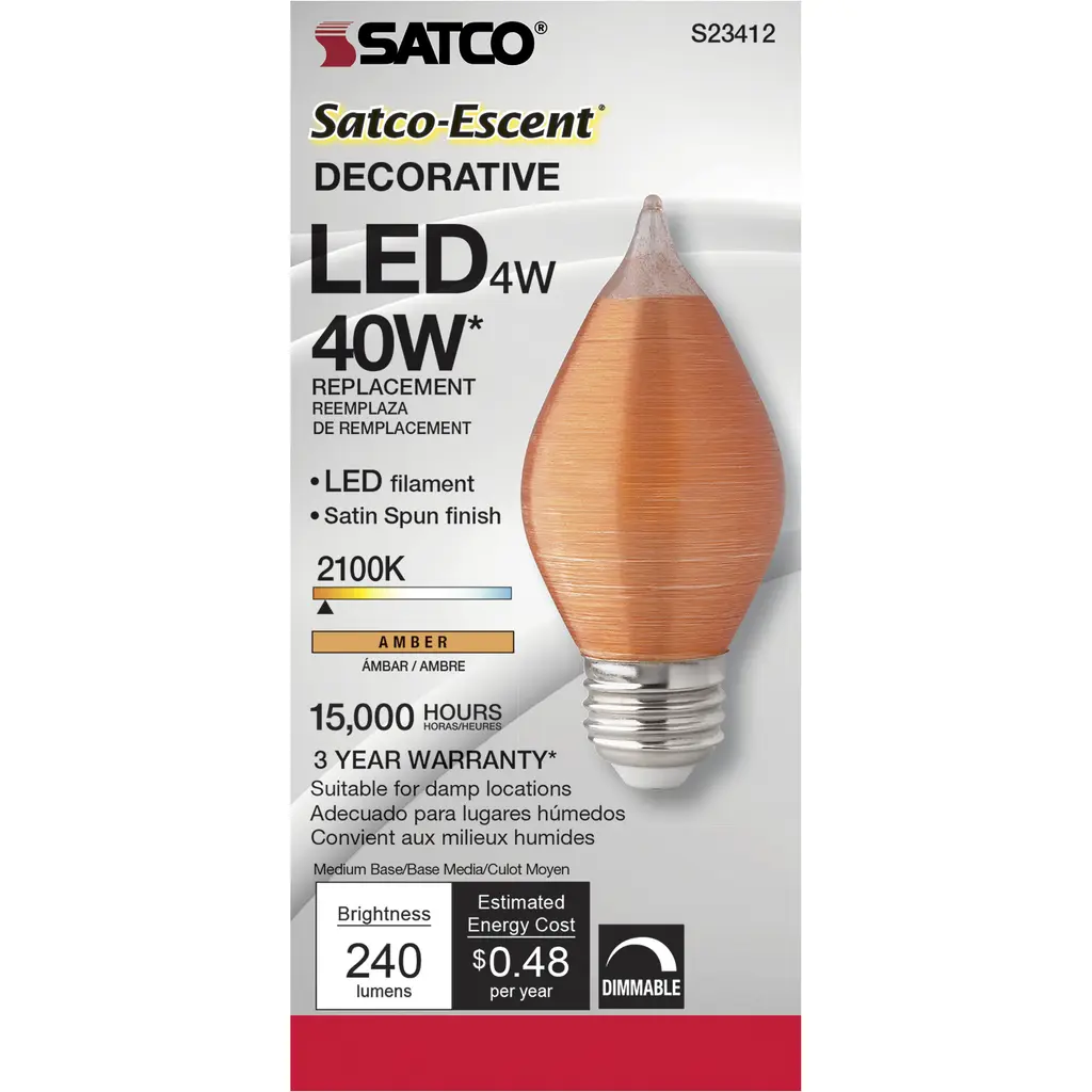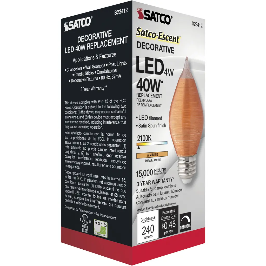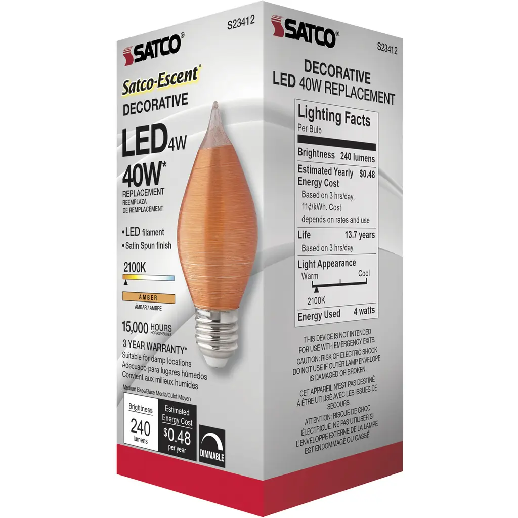 4W C15 LED; Satin Spun; Amber; Medium base; 2100K; 240 Lumens; 120V