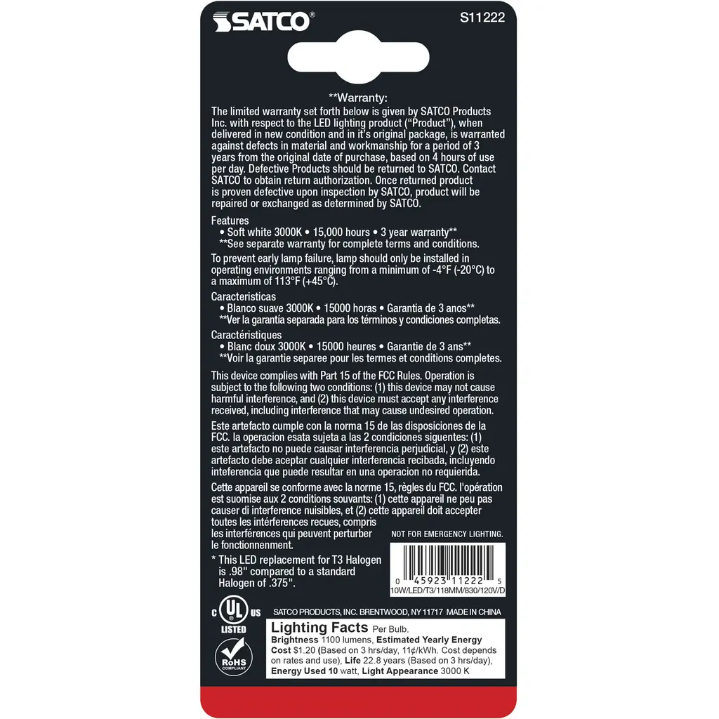 10W LED Bulb - J-Type T3 118mm - 120V - R7S Base - 3000K - Double Ended - 200 Degree Beam Angle