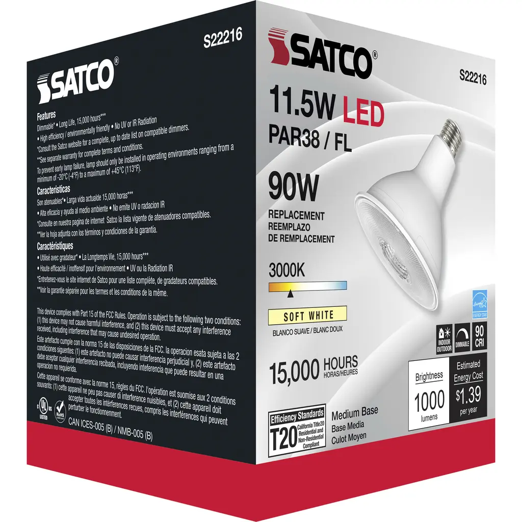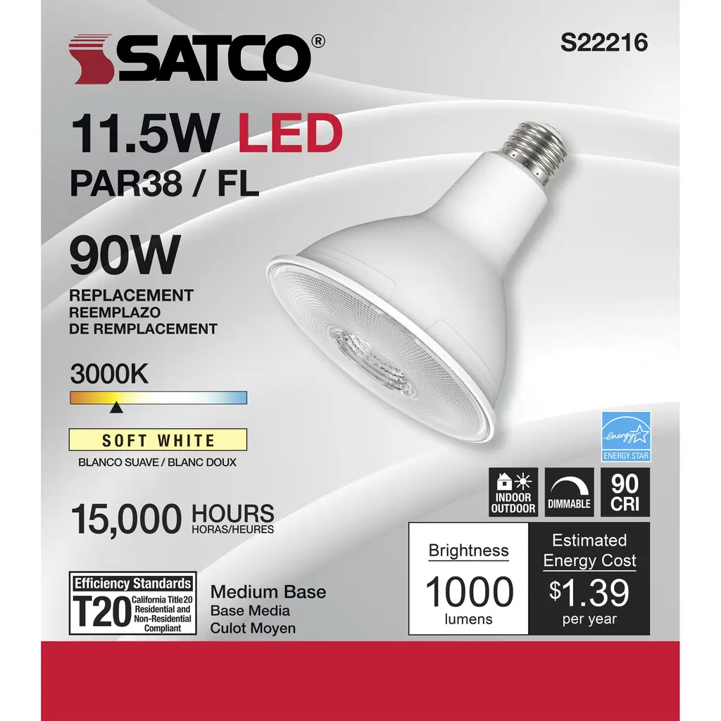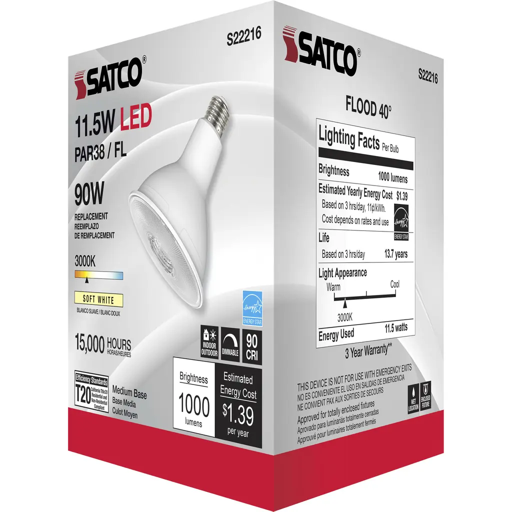11.5 Watt PAR38 LED - 90 CRI - 3000K - 40 Degree Beam Angle - Medium Base - 120 Volts