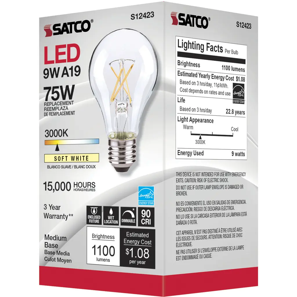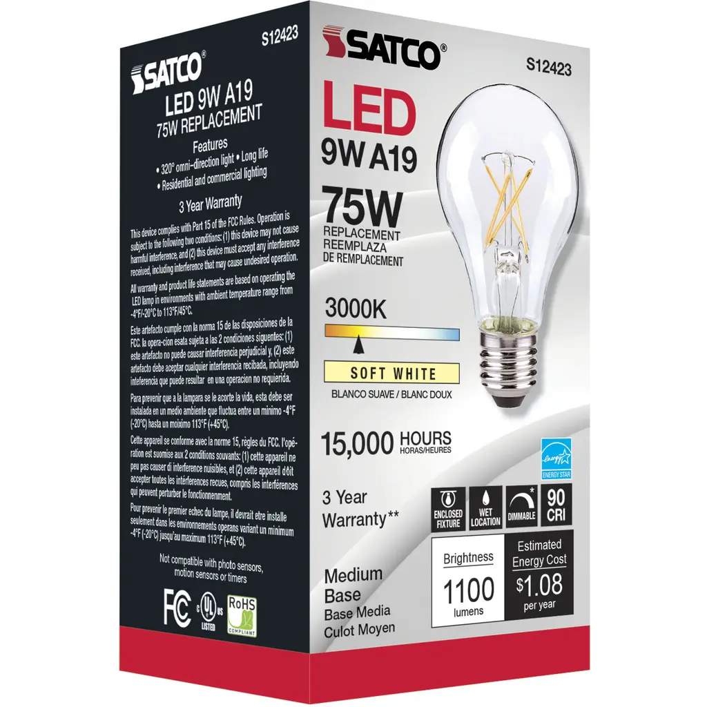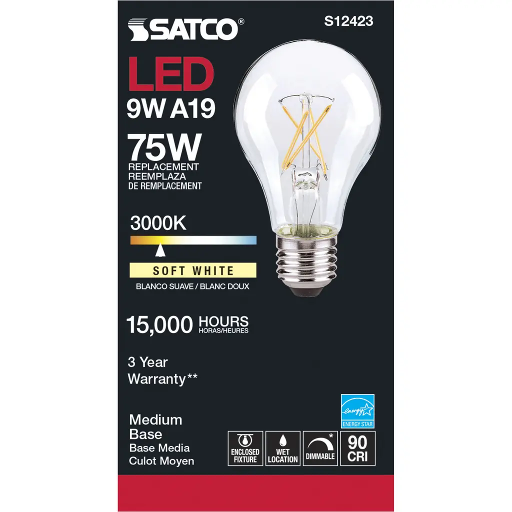 10.5 Watt LED A19 Lamp - Clear Medium Base 3000K 90 CRI 120 Volts