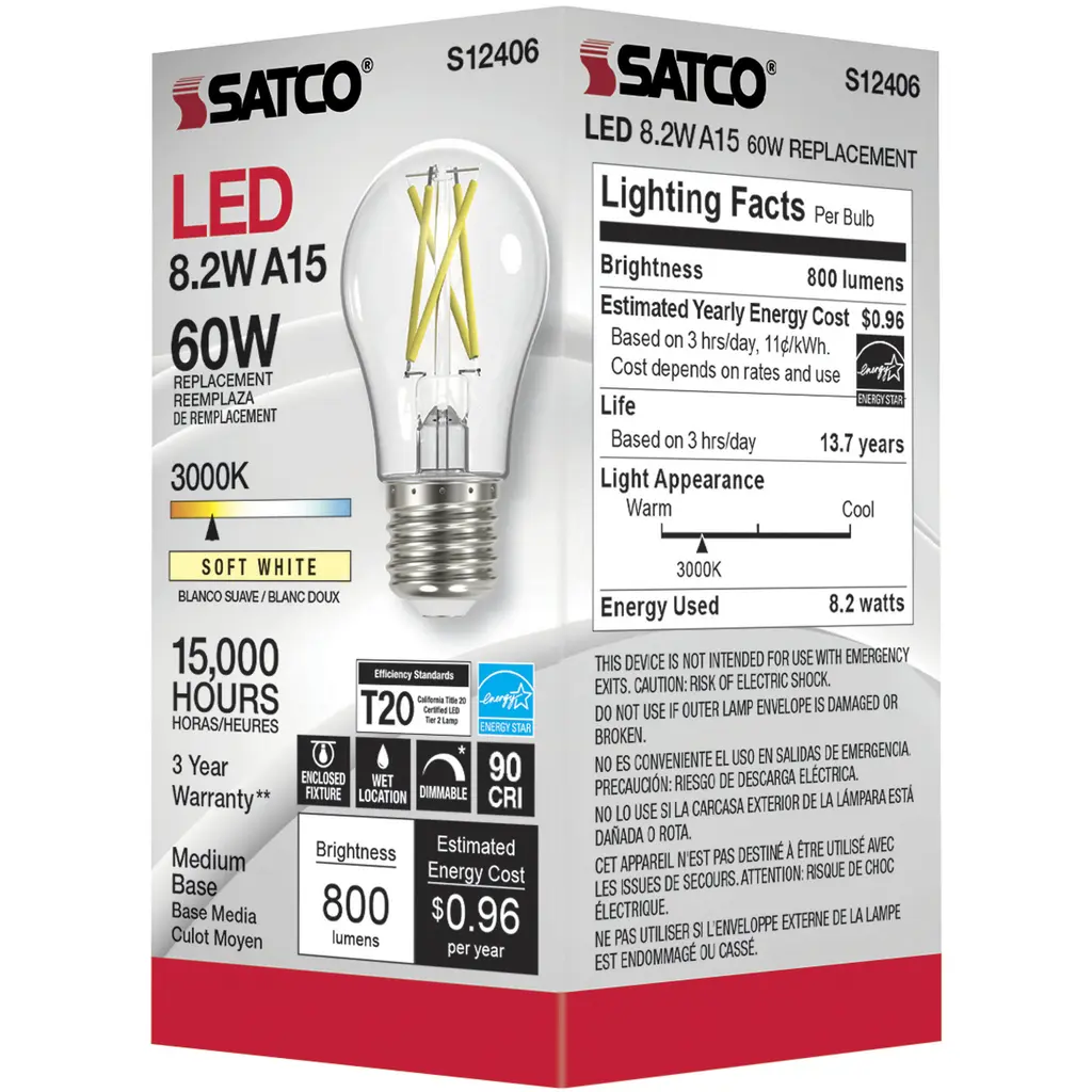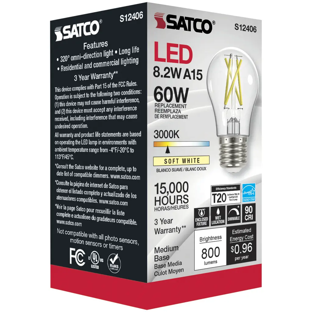 8.2 Watt LED A15 Lamp - Clear Medium Base 3000K 90 CRI 120 Volts