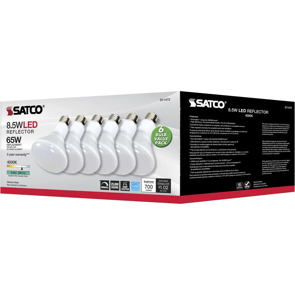 8.5 Watt - BR30 LED - 4000K - 80 CRI - Medium Base - 120 Volts - Dimmable - 6-Pack