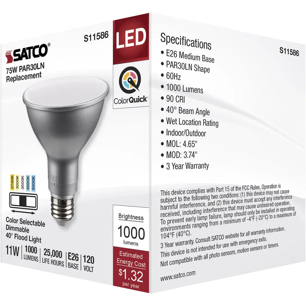 11 Watt PAR30LN LED Medium Base - Silver Finish - CCT Selectable - 120 Volt - 40 Degree Beam Angle