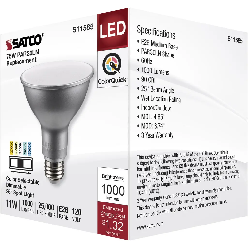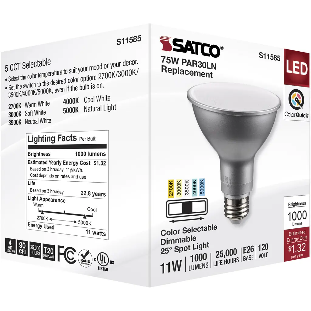 11 Watt PAR30LN LED Medium Base - Silver Finish - CCT Selectable - 120 Volt - 25 Degree Beam Angle