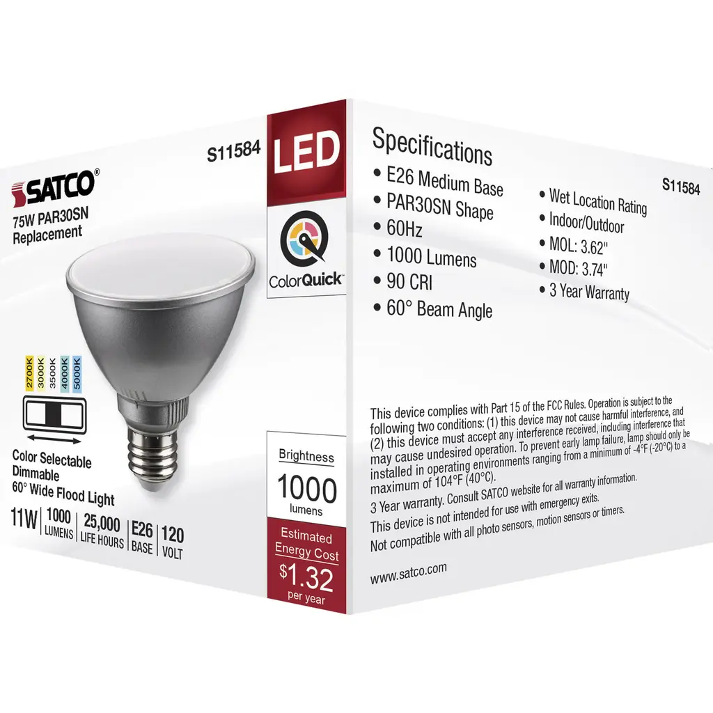 Lumos Led Medium Par30sn 11 Watt 2700k/3000k/3500k/4000k/5000k Light Bulb