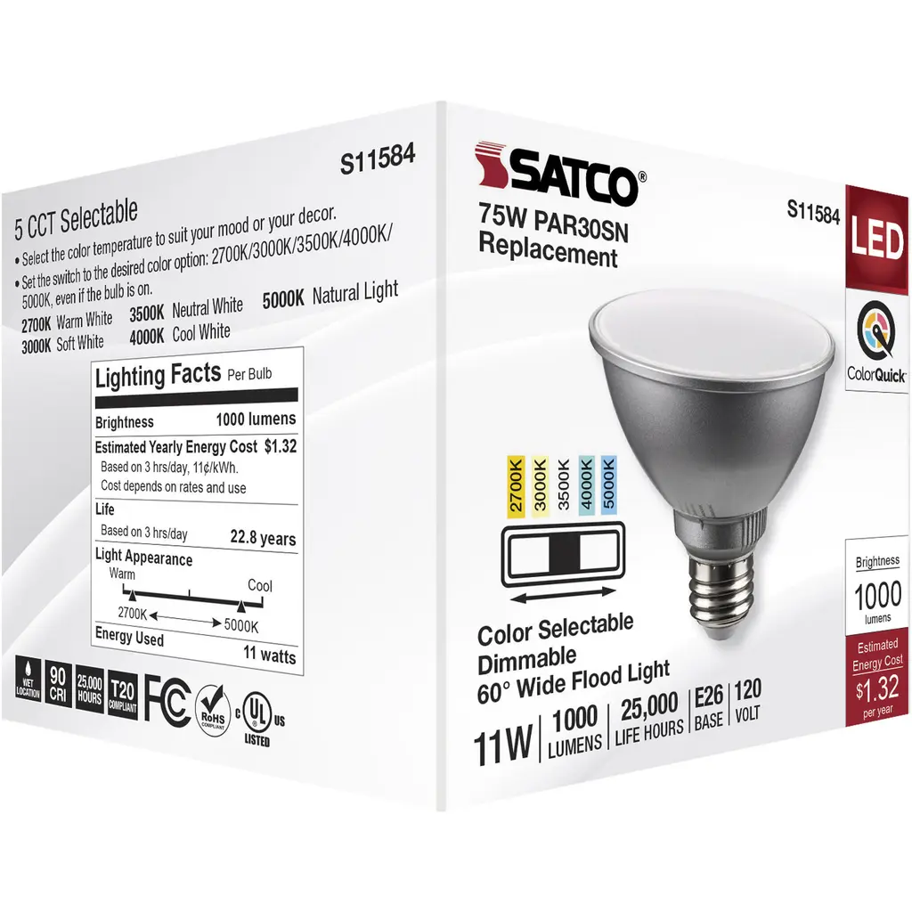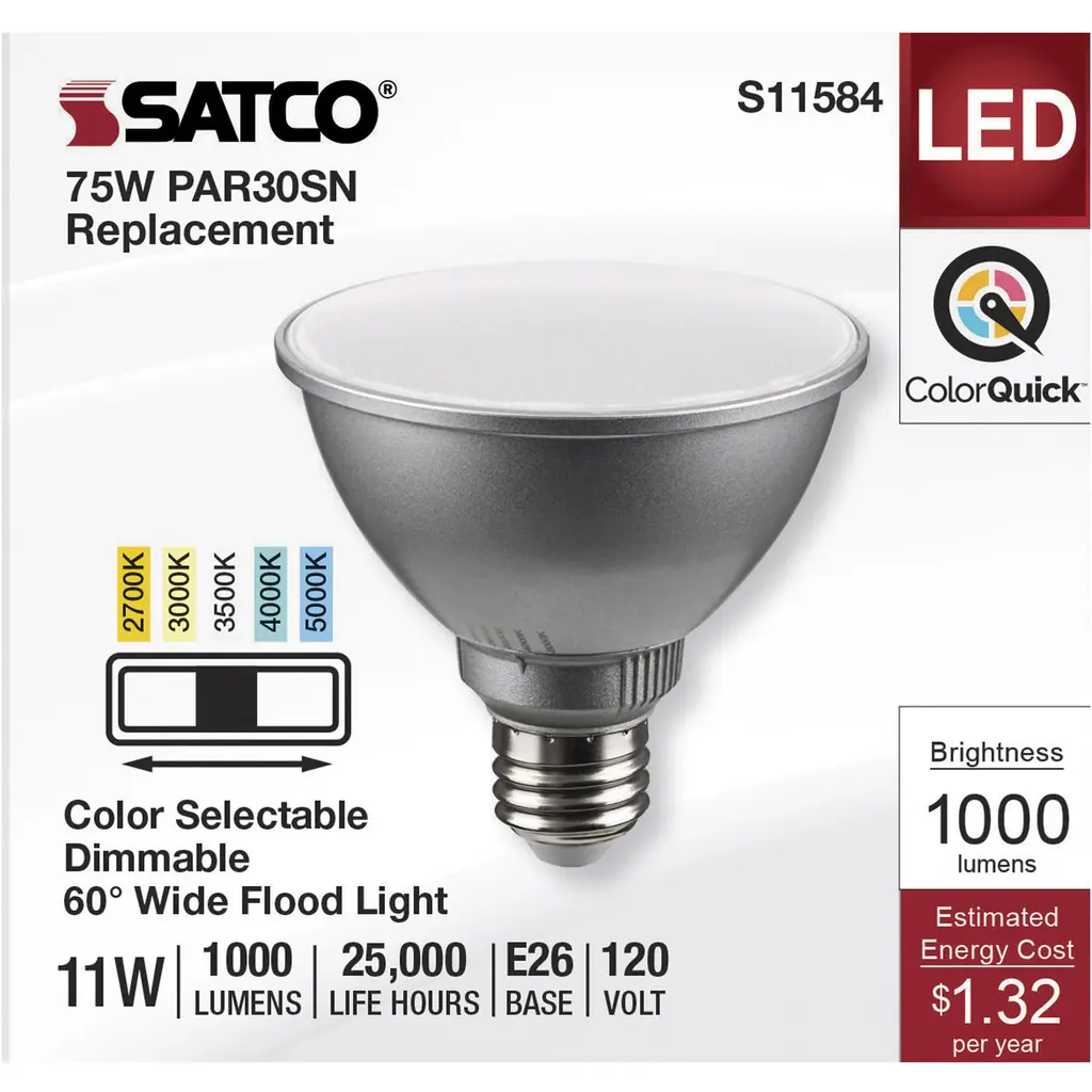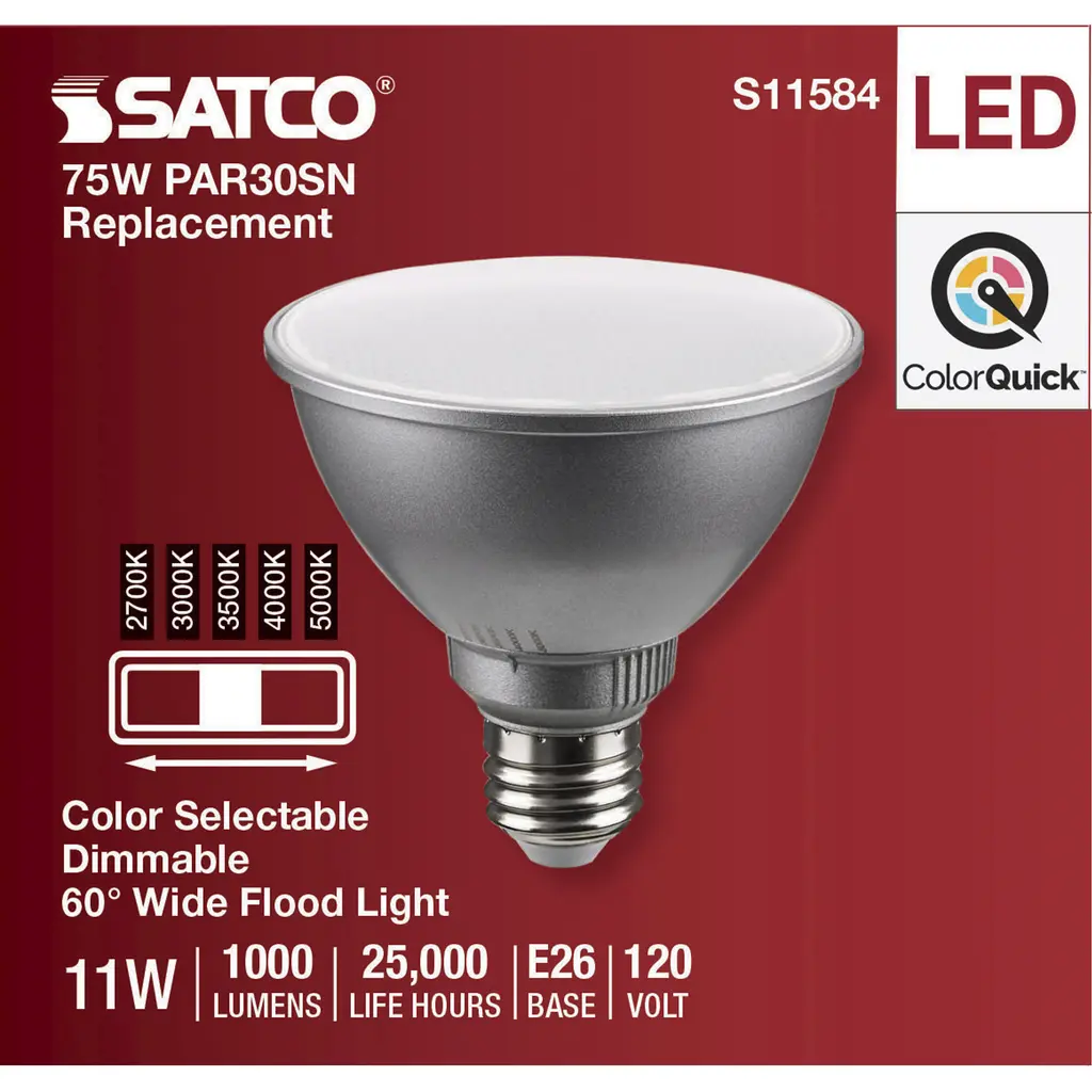 11 Watt PAR30SN LED Medium Base - Silver Finish - CCT Selectable - 120 Volt - 60 Degree Beam Angle