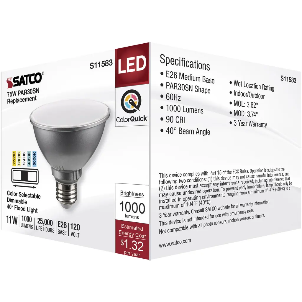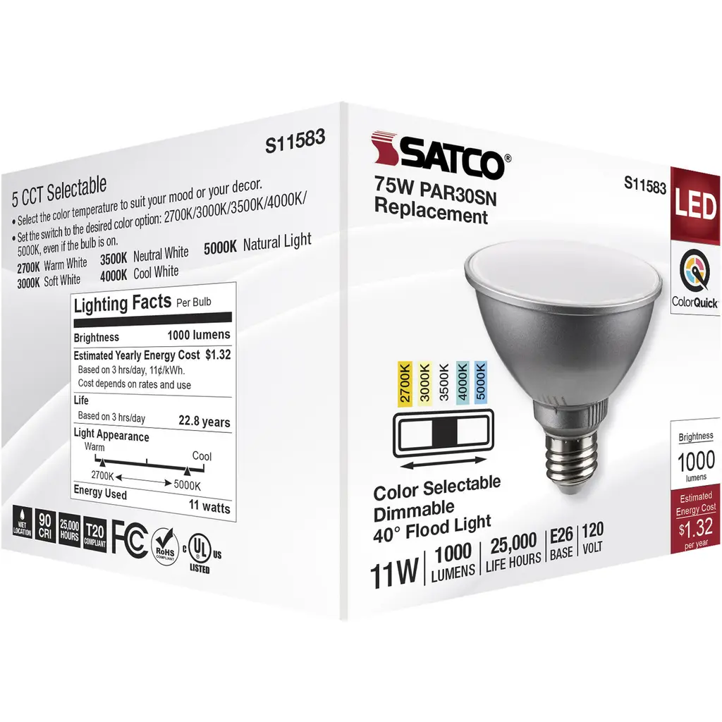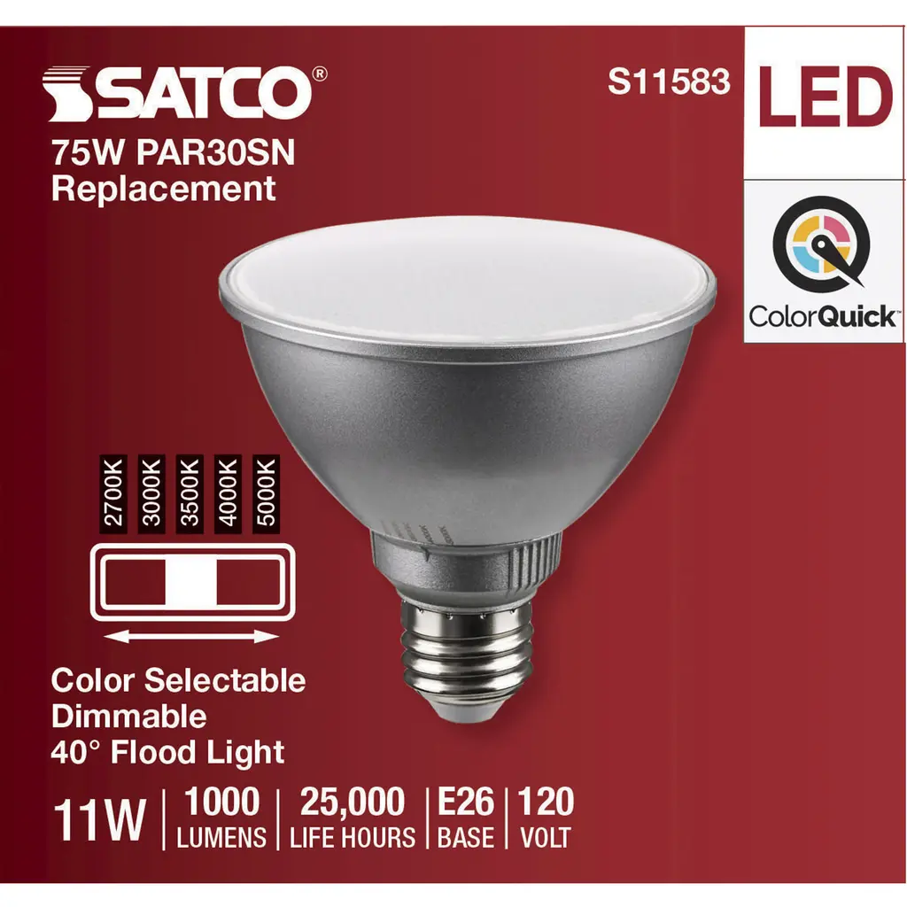 11 Watt PAR30SN LED Medium Base - Silver Finish - CCT Selectable - 120 Volt - 40 Degree Beam Angle