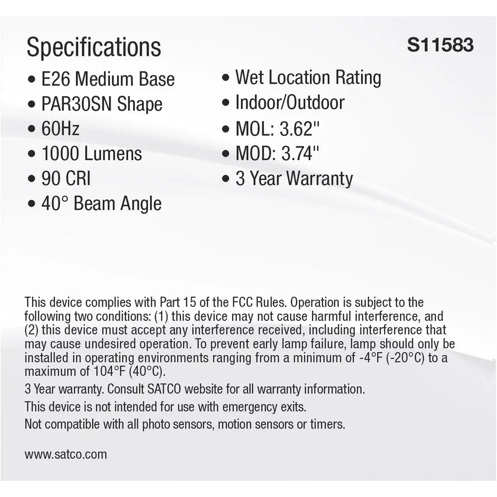 Lumos Led Medium Par30sn 11 Watt 2700k/3000k/3500k/4000k/5000k Light Bulb