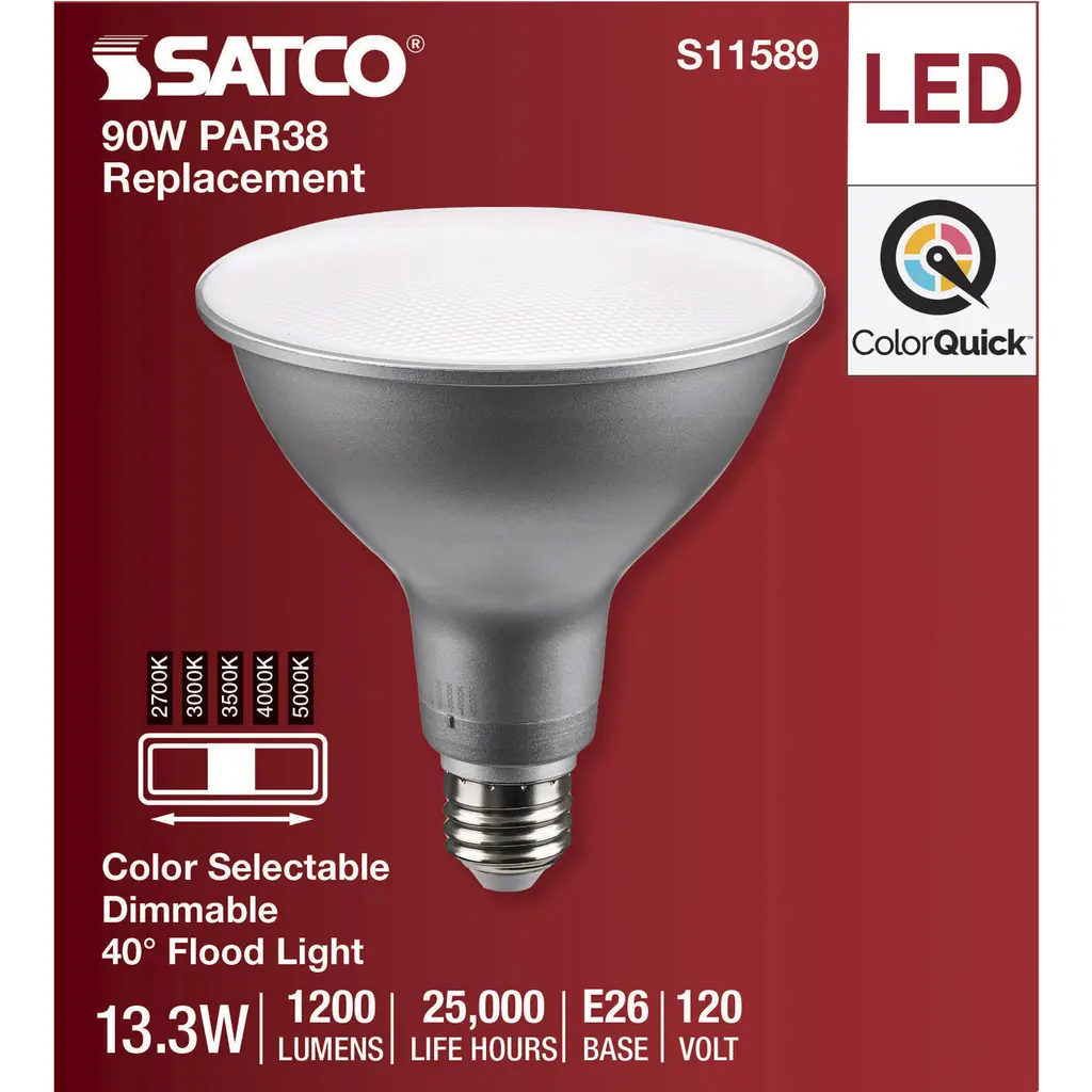 13.3 Watt PAR38 LED Medium Base - Silver Finish - CCT Selectable - 120 Volt - 40 Degree Beam Angle