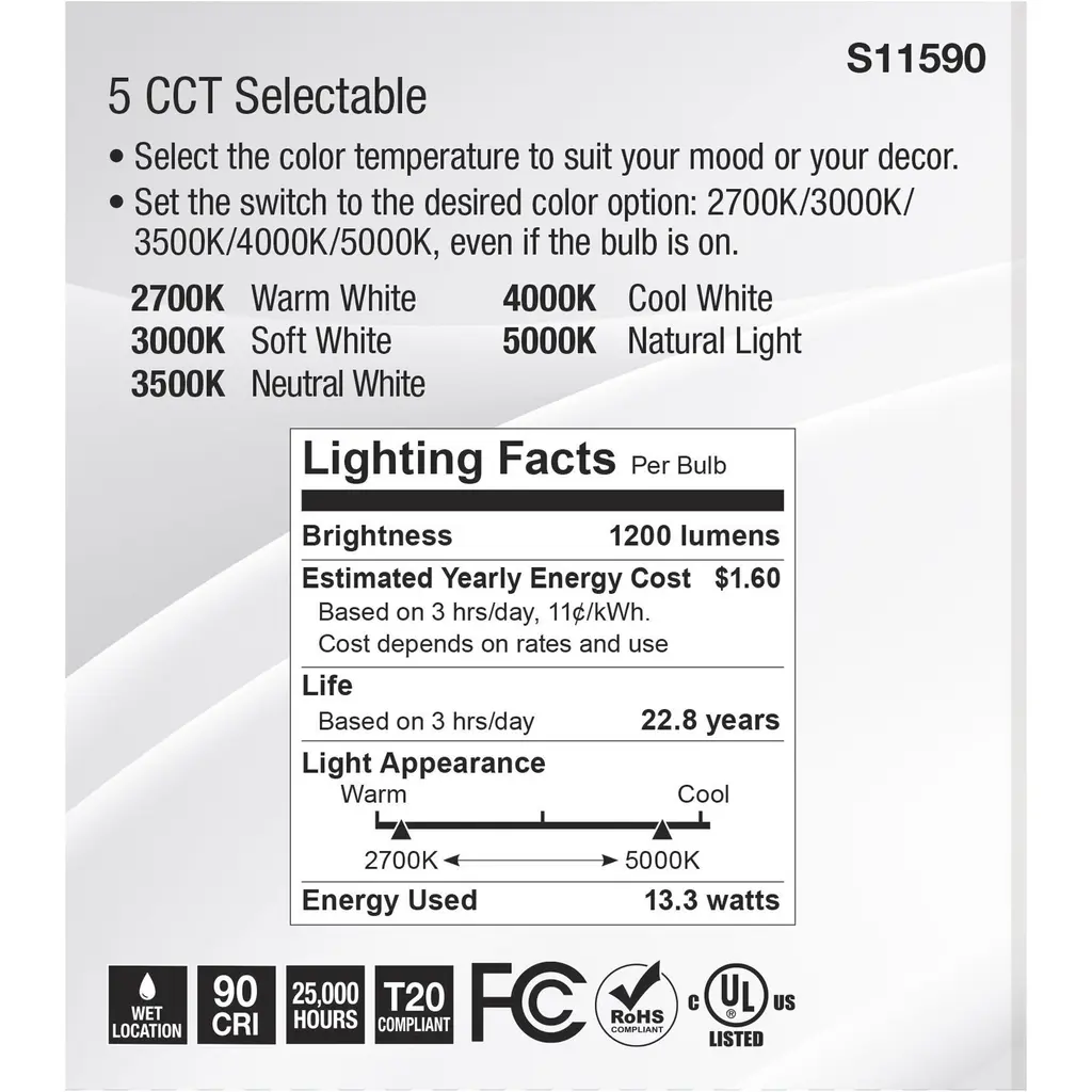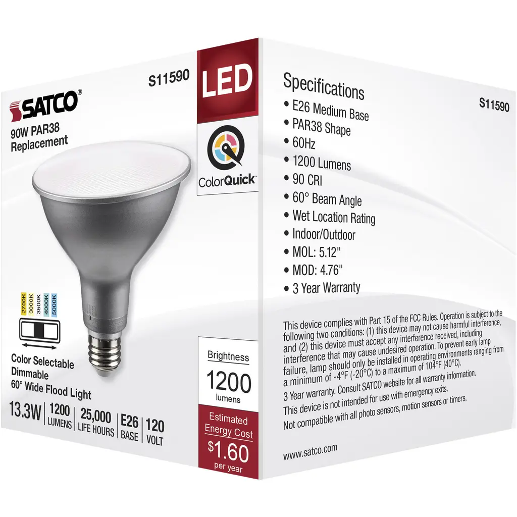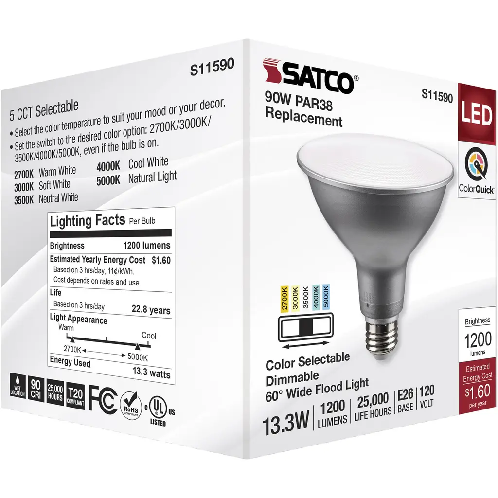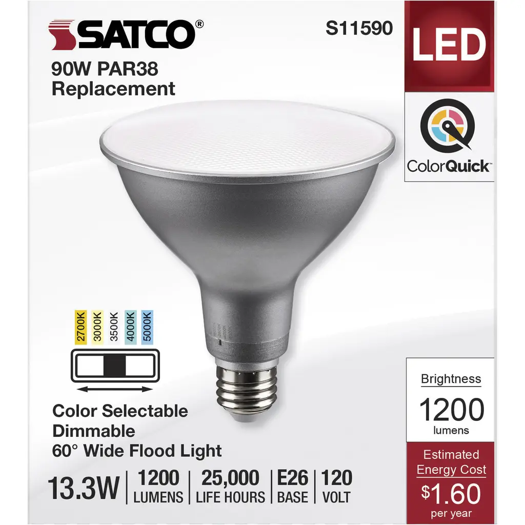 13.3 Watt PAR38 LED Medium Base - Silver Finish - CCT Selectable - 120 Volt - 60 Degree Beam Angle