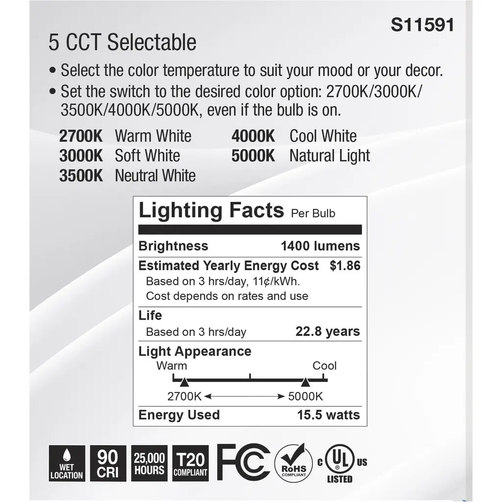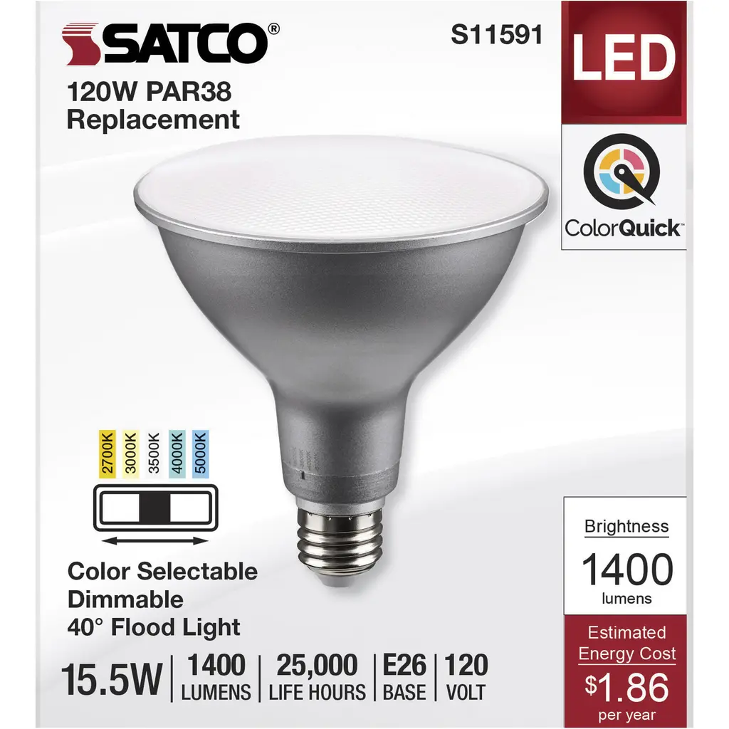 15.5 Watt PAR38 LED Medium Base - Silver Finish - CCT Selectable - 120 Volt - 40 Degree Beam Angle