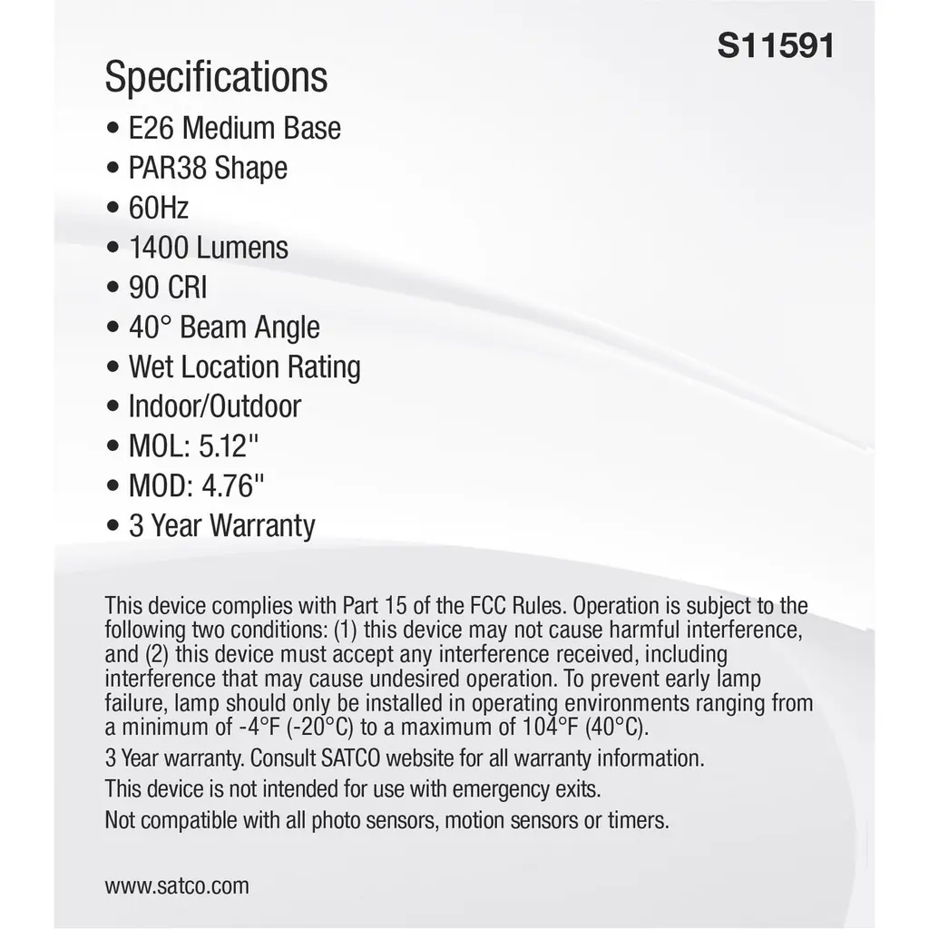 Lumos Led Medium Par38 15.5 Watt 2700k/3000k/3500k/4000k/5000k Light Bulb