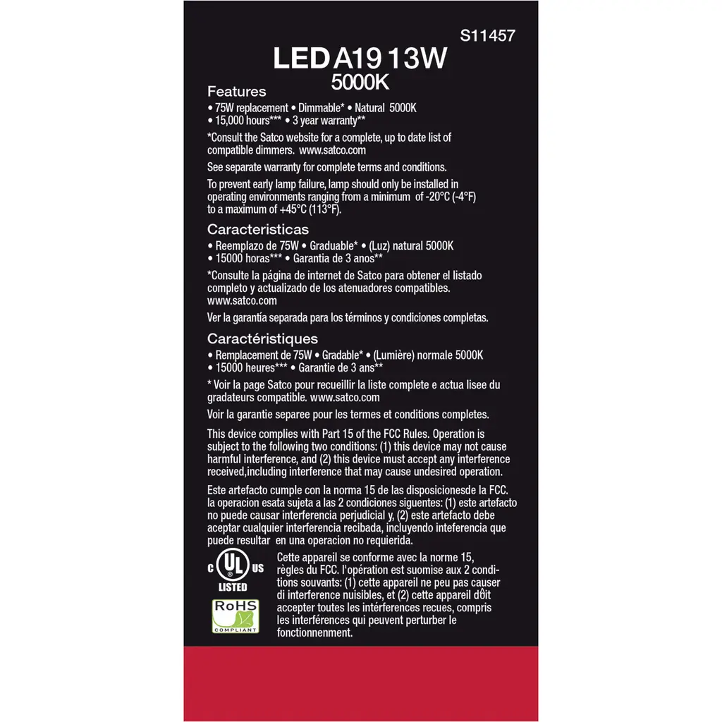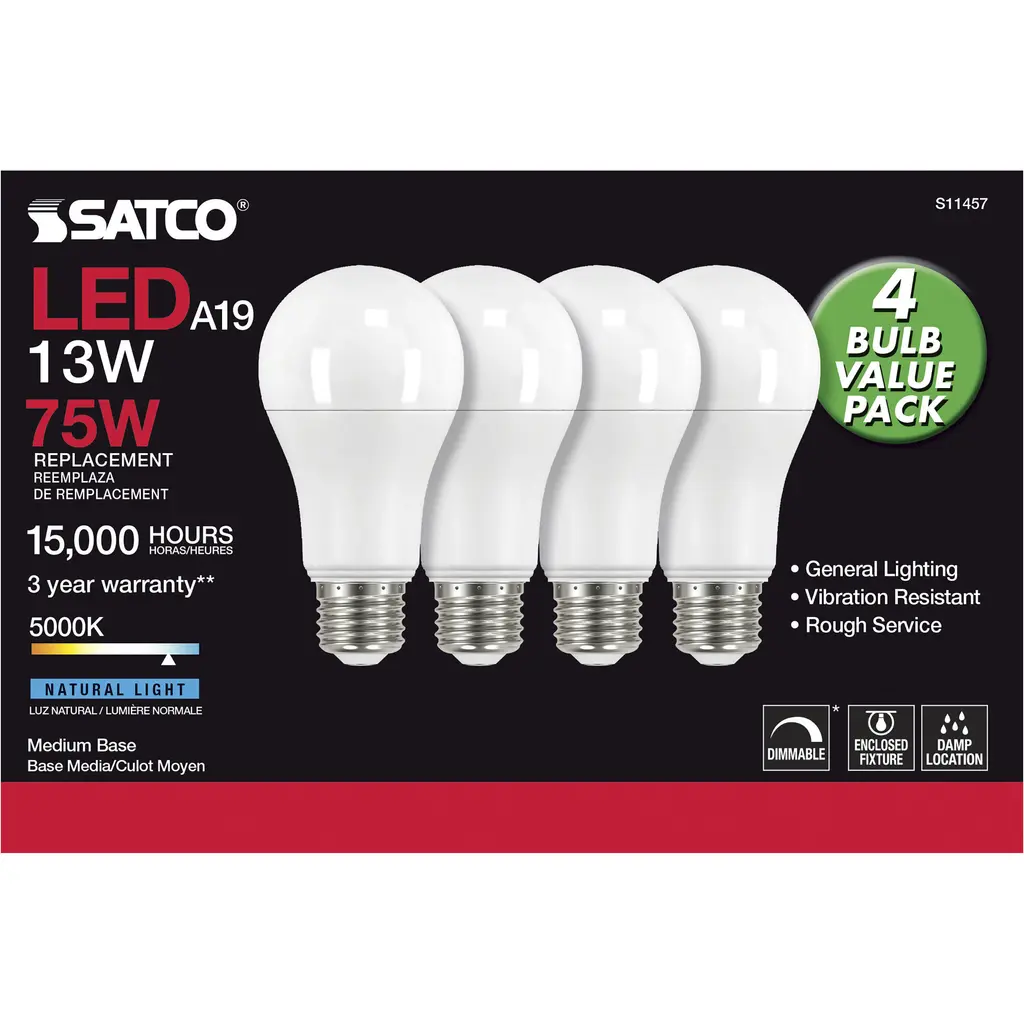 13 Watt A19 LED - 5000K - Dimmable - Medium Base - 230 Degree Beam Angle - 4-Pack