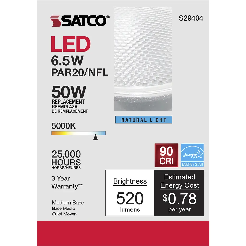 6.5 Watt PAR20 LED Lamp - 5000K - 25 Degree Beam Angle - Medium Base - 120 Volts