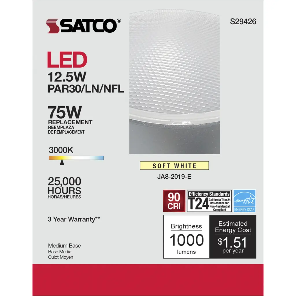 12.5 Watt PAR30LN LED Lamp - 3000K - 25 Degree Beam Angle - Medium Base - 120 Volts