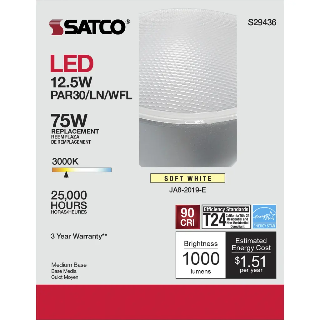 12.5 Watt PAR30LN LED Lamp - 3000K - 60 Degree Beam Angle - Medium Base - 120 Volts