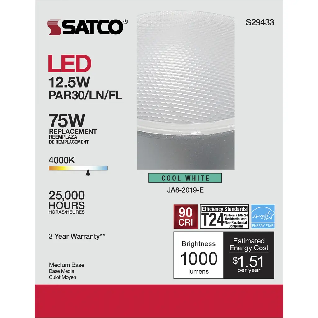 12.5 Watt PAR30LN LED Lamp - 4000K - 40 Degree Beam Angle - Medium Base - 120 Volts