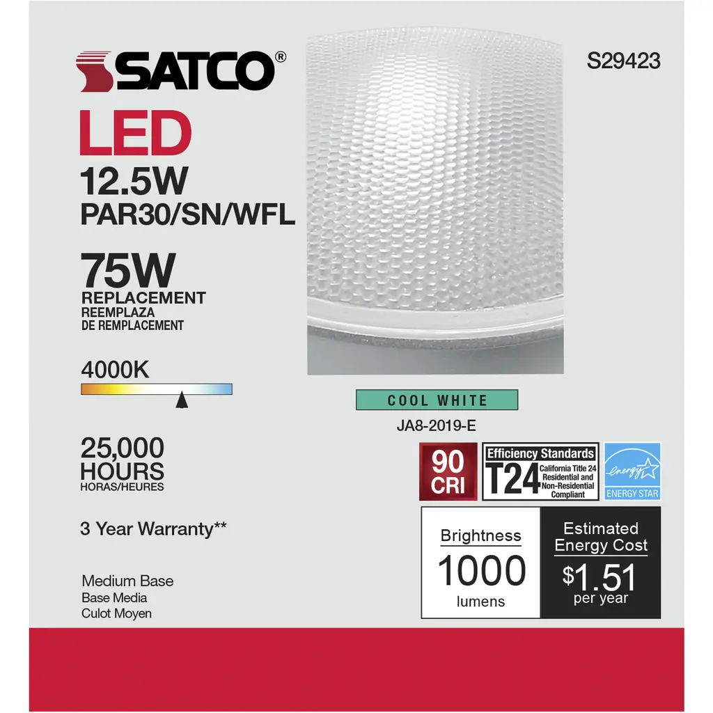 12.5 Watt PAR30SN LED Lamp - 4000K - 60 Degree Beam Angle - Medium Base - 120 Volts