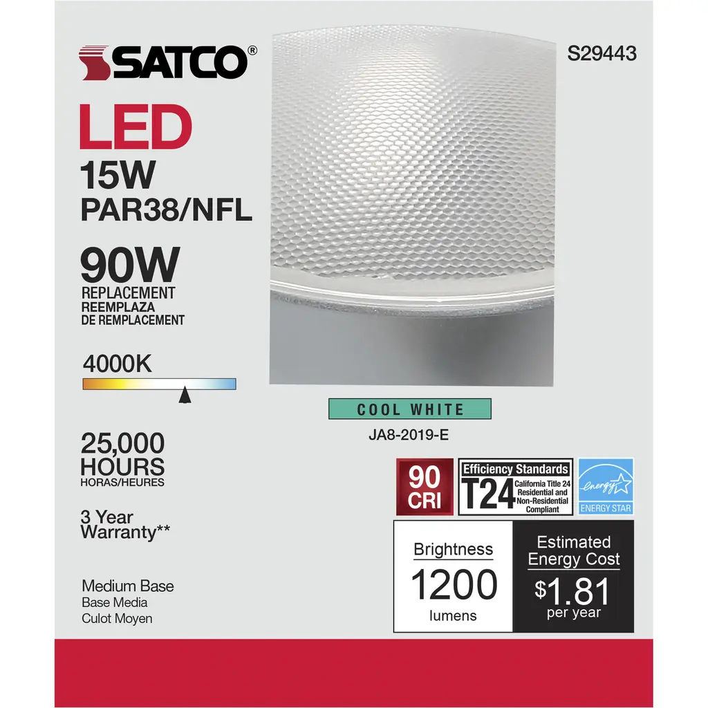 15 Watt PAR38 LED Lamp - 4000K - 25 Degree Beam Angle - Medium Base - 120 Volts