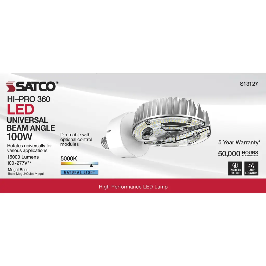 100 Watt LED HID Replacement - 5000K Mogul Extended Base 100-277 Volts