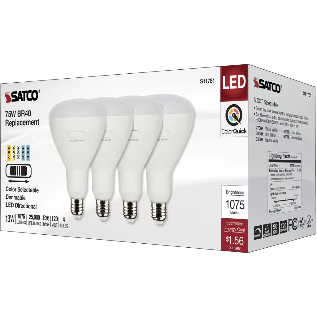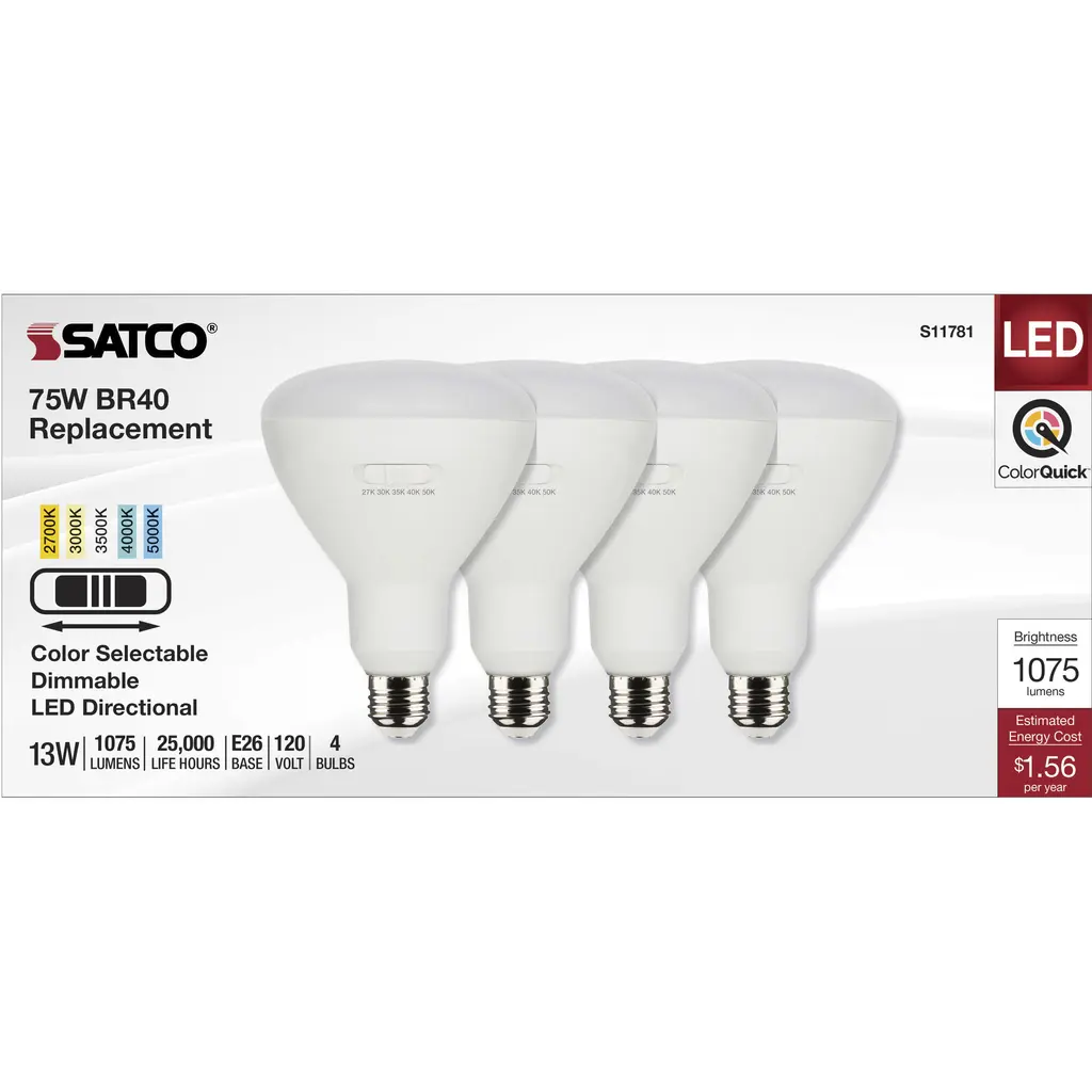 13 Watt BR40 LED - Medium Base - CCT Selectable - White Finish - 90 CRI - 120 Volt - 4-Pack