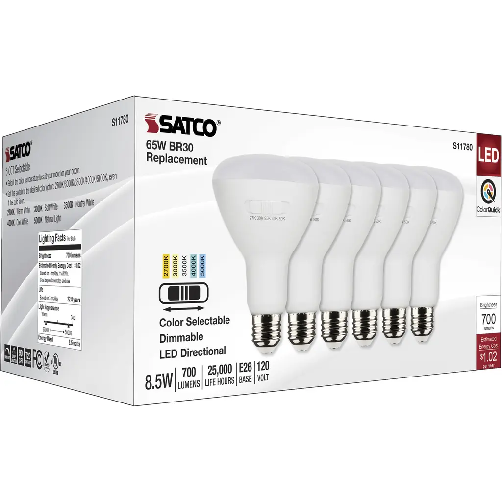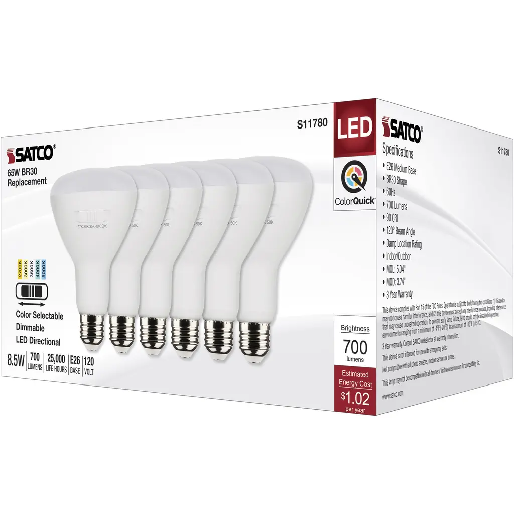 8.5 Watt BR30 LED - Medium Base - CCT Selectable - White Finish - 90 CRI - 120 Volt - 6-Pack
