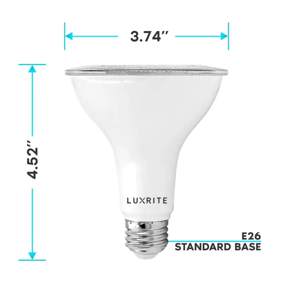 Luxrite 4 Pack Led Par30 Flood Light Bulb, 75w Equivalent, 5000k Bright White, 850 Lumens, 11w Dimmable, Wet Rated, E26 Base, Ul Listed