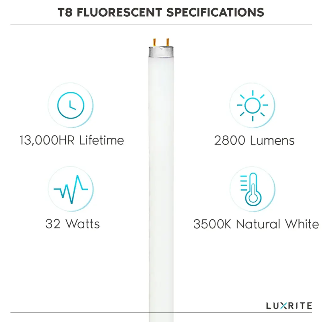 Luxrite F32t8/835 32w 48 Inch T8 Fluorescent Tube Light Bulb, 3500k Natural White, 2800 Lumens, G13 Medium Bi-pin Base 4-pack