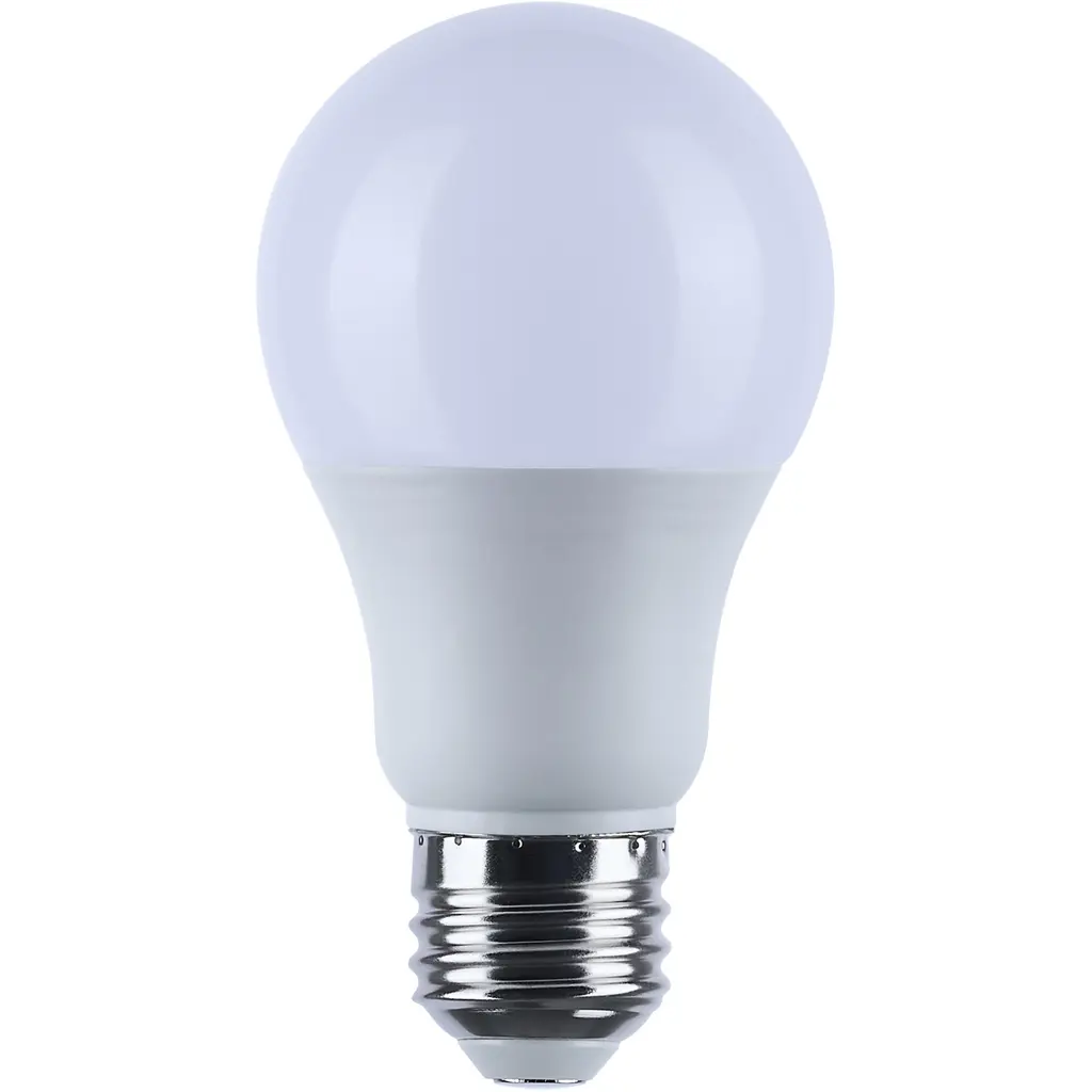 A four-pack of dimmable replacement A19 LED lamps. These are damp location rated, and approved for use in totally enclosed fixtures. The lamps are vibration-resistant and suitable for rough service environments.