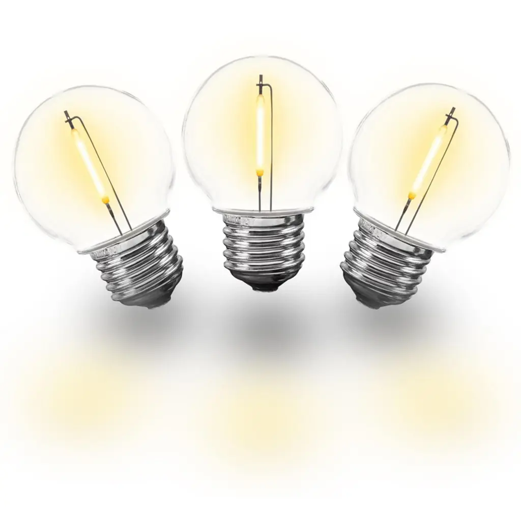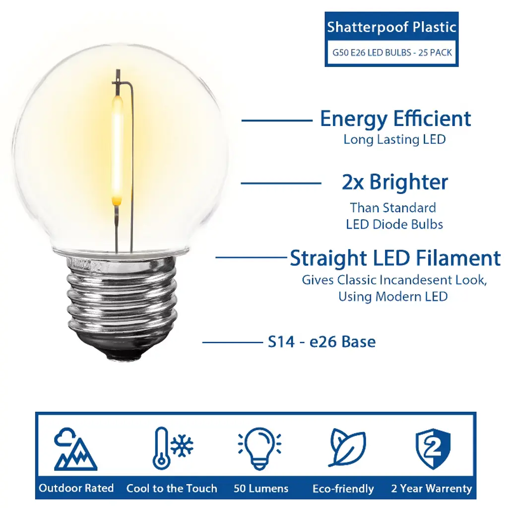 Novelty Lights 25 Pack G50 Warm White Plastic 1 Filament Globe Led String Light Replacement Bulbs E26 Medium Base 1 Watt