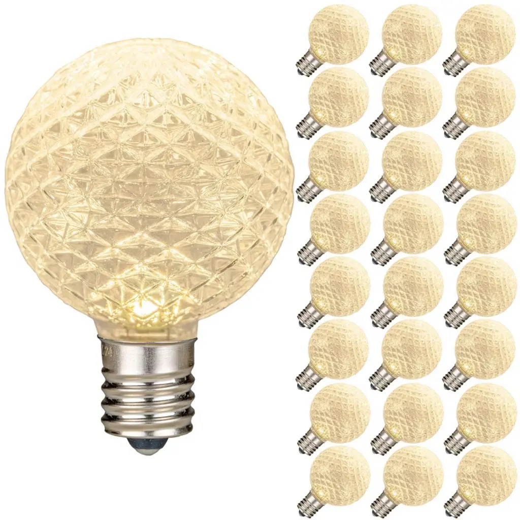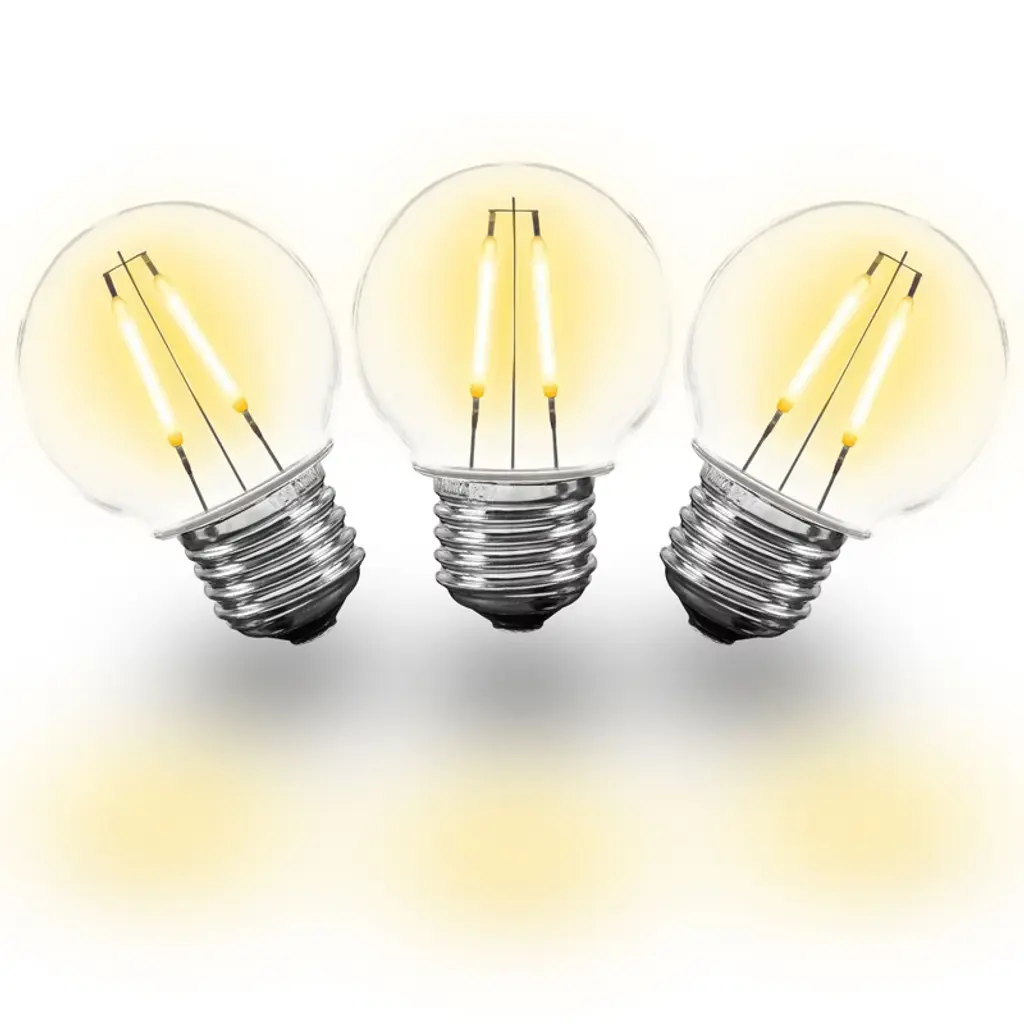 Novelty Lights 25 Pack G50 Warm White Plastic 2 Filament Globe Led String Light Replacement Bulbs E26 Medium Base 1 Watt