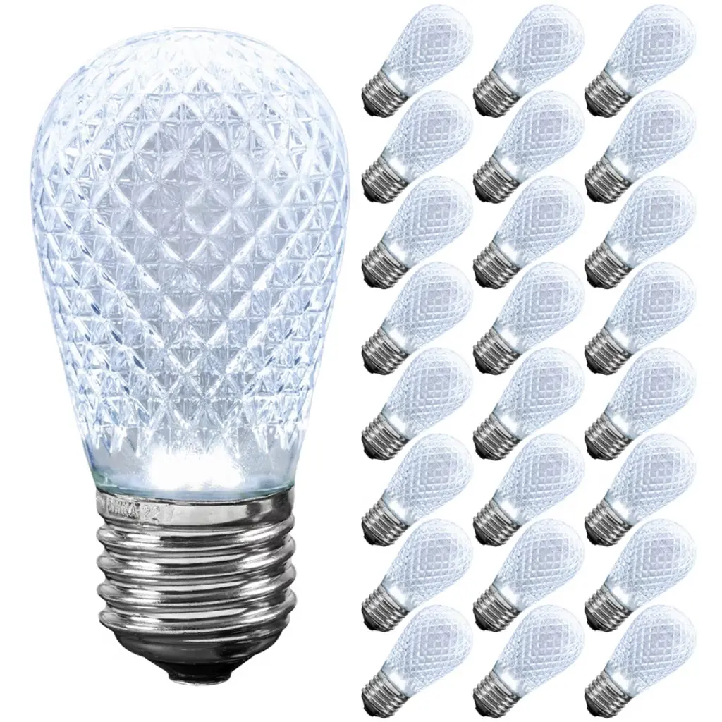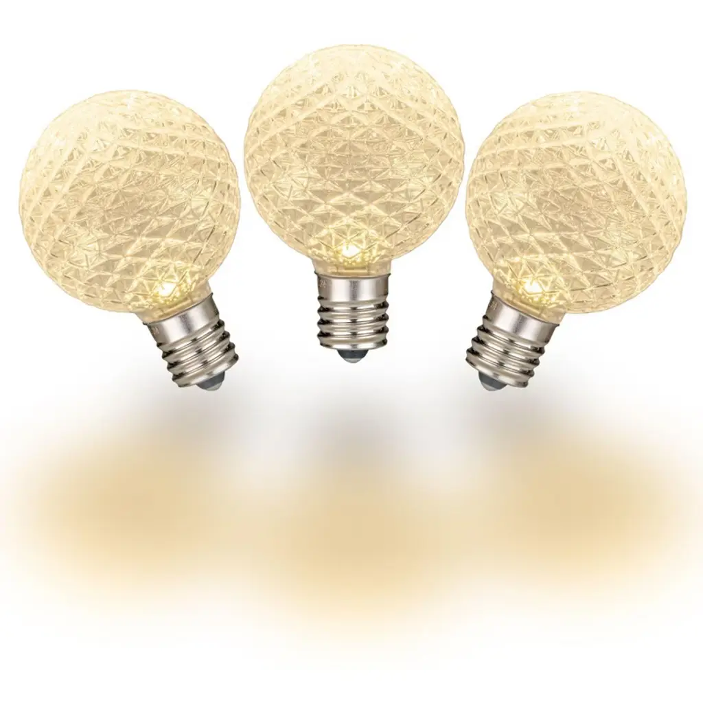 Novelty Lights 25 Pack Warm White Plastic Diamond Faceted G40 Globe Led String Light Replacement Bulbs E12 Base