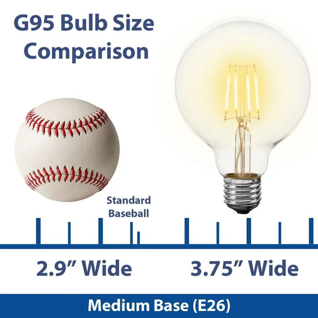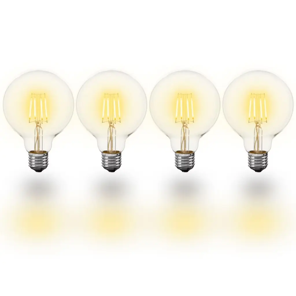 Brighten your space with timeless style and cutting-edge performance. This 4-pack of G95 LED Globe Filament Bulbs combines the vintage charm of exposed filaments with the energy-saving benefits of modern LED technology. Each bulb features a clear glass globe design and a medium E26 base, making it a perfect fit for a wide range of standard fixtures. With their large, round G95 shape and warm, inviting glow, these bulbs are ideal for pendant lights, open fixtures, vanity setups, and statement lamps or anywhere you want to make lighting part of the decor.