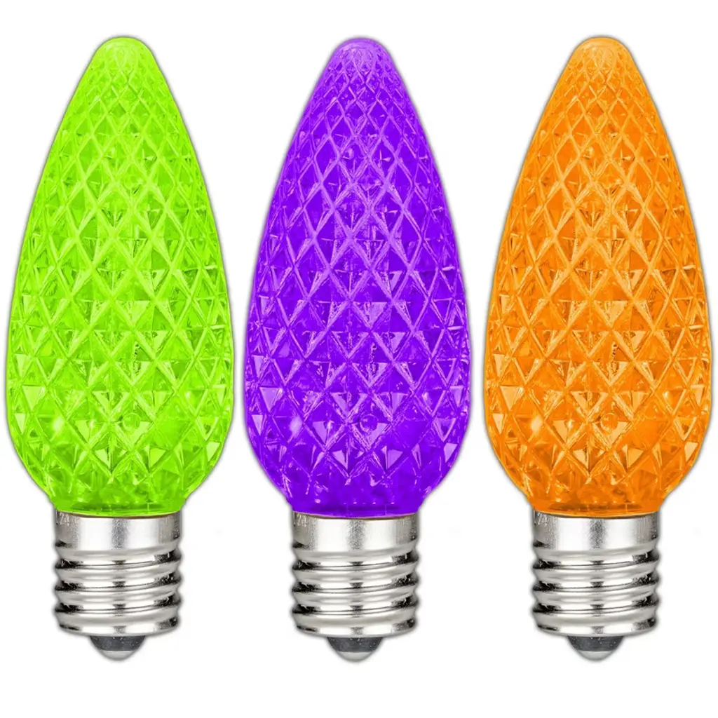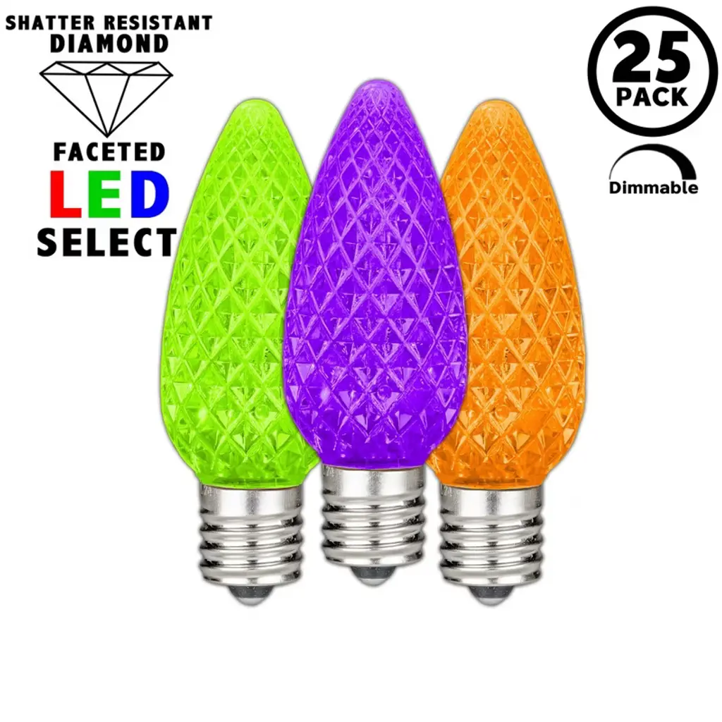 Novelty Lights Lime/purple/orange C9 Led Diamond Faceted Halloween Replacement Bulbs Dimmable 25 Pack