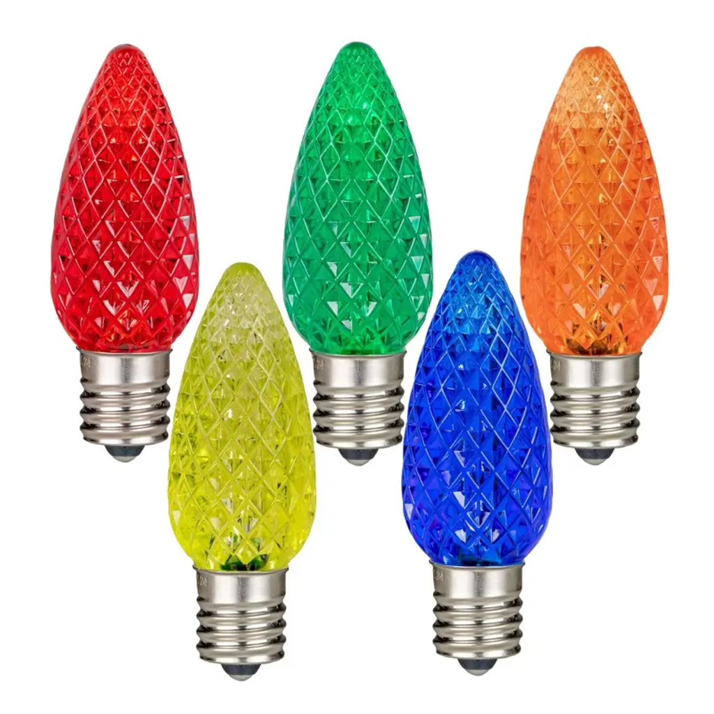 Novelty Lights Multicolored C9 Led Diamond Faceted Christmas Replacement Bulbs Dimmable 25 Pack
