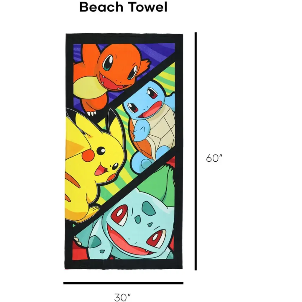 Pokemon Beach Towel Pikachu Charmander Bulbasaur Squirtle 30"x60" Multicolored