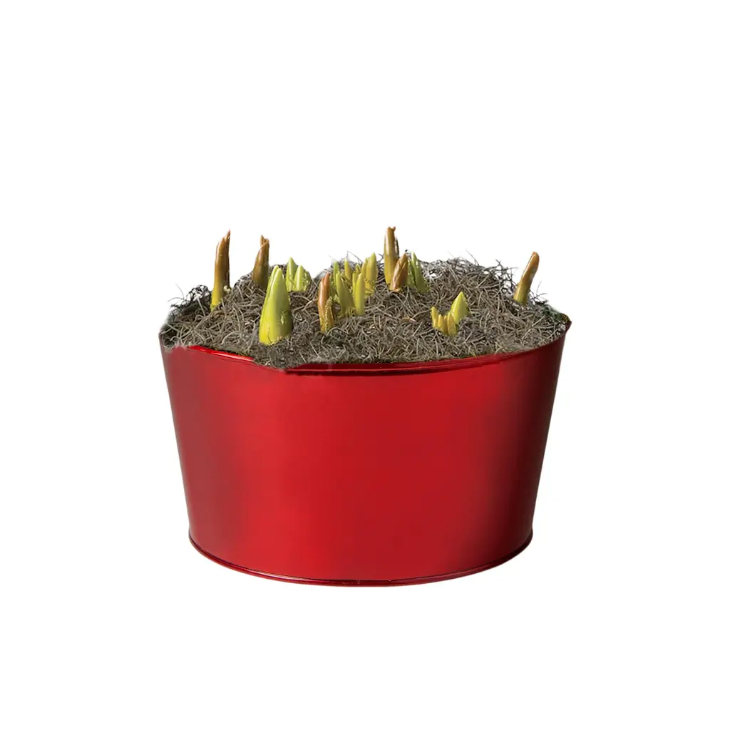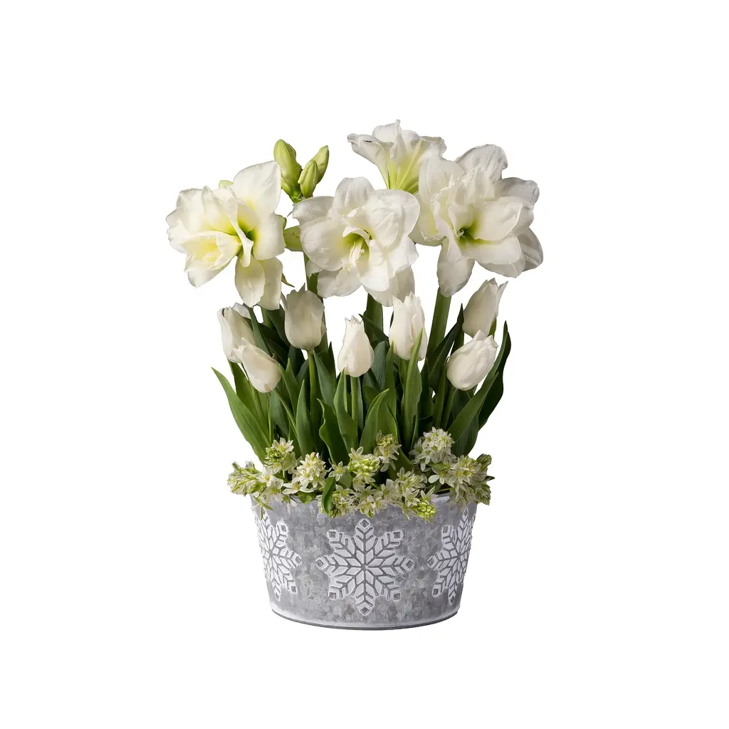 Flowers have universal appeal, and these are so easy to send! Brighten someone's day with our delightful Red & White Dutch Flower Bulb Holiday Gift Garden - it will bring them weeks of joy. Our Holiday Bulb Garden arrives with pre-planted bulbs in a grower's pot: 3 Seadov Tulips, 4 Leen Van Der Mark Tulips, 2 Mount Hood Narcissus, 2 Sailboat Narcissus, 8 Balansae Ornithog. This selection was chosen for its long-lasting beauty and the vibrant holiday colors of red and white to celebrate the holiday season. Care is easy! Just water and watch as these living, growing flowers bloom in about three weeks time. Display the garden in the included, reusable red tin. A thoughtful gift for anyone on your list.