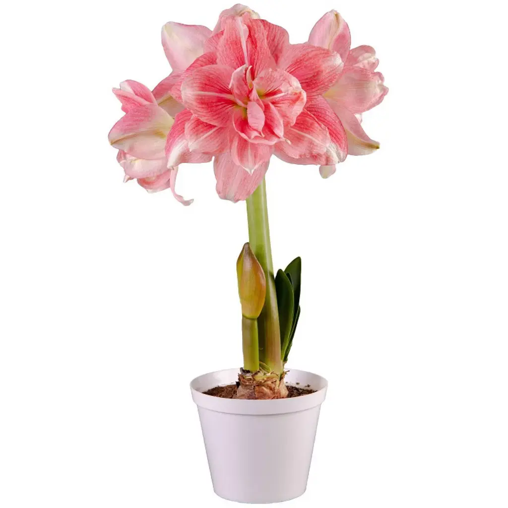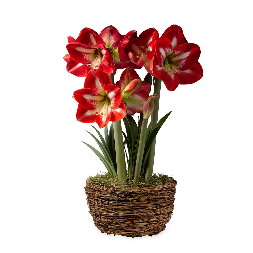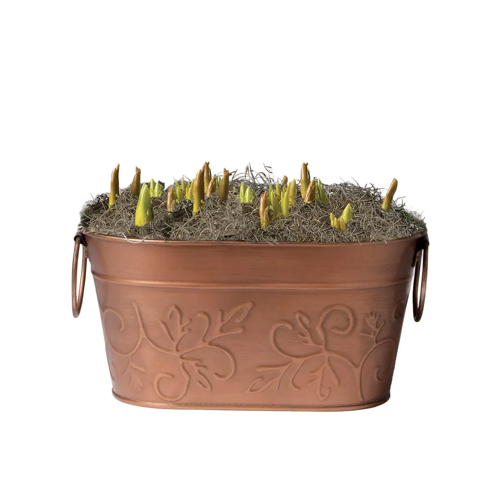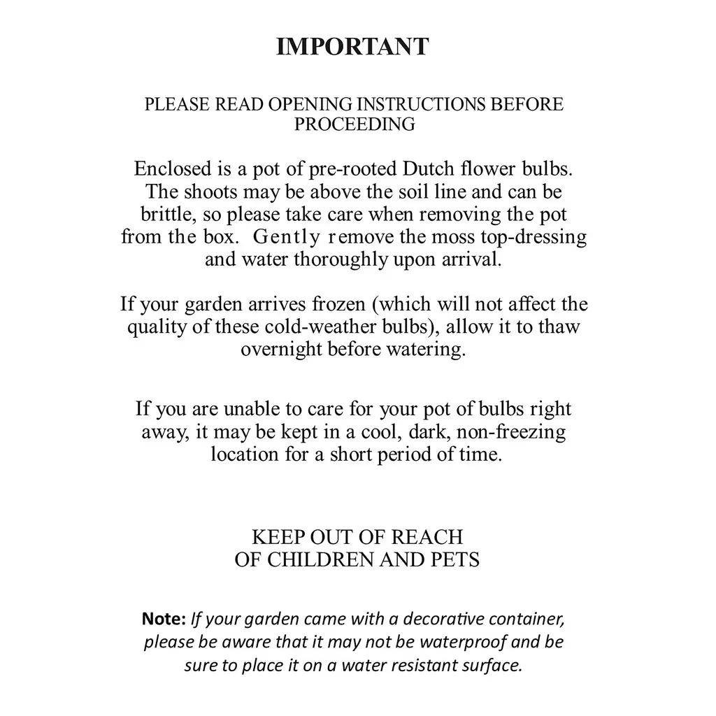 Here's a beautiful gift bursting with color! Our Rozetta Amaryllis Bulb Garden brings bountiful cheer to someone’s day with it's long-lasting beauty. Amaryllis is an easy, no-fuss gift that will product vibrant blooms for weeks of color and enjoyment. Just water and watch the show as the bulb grows and blooms. Our Rozetta Amaryllis Bulb Garden come with two pre-planted bulbs nestled in a reuable copper-colored metal tub. The gift garden arrives in the first stages of growth, with the Amaryllis blooms appearing in about 2-3 weeks.