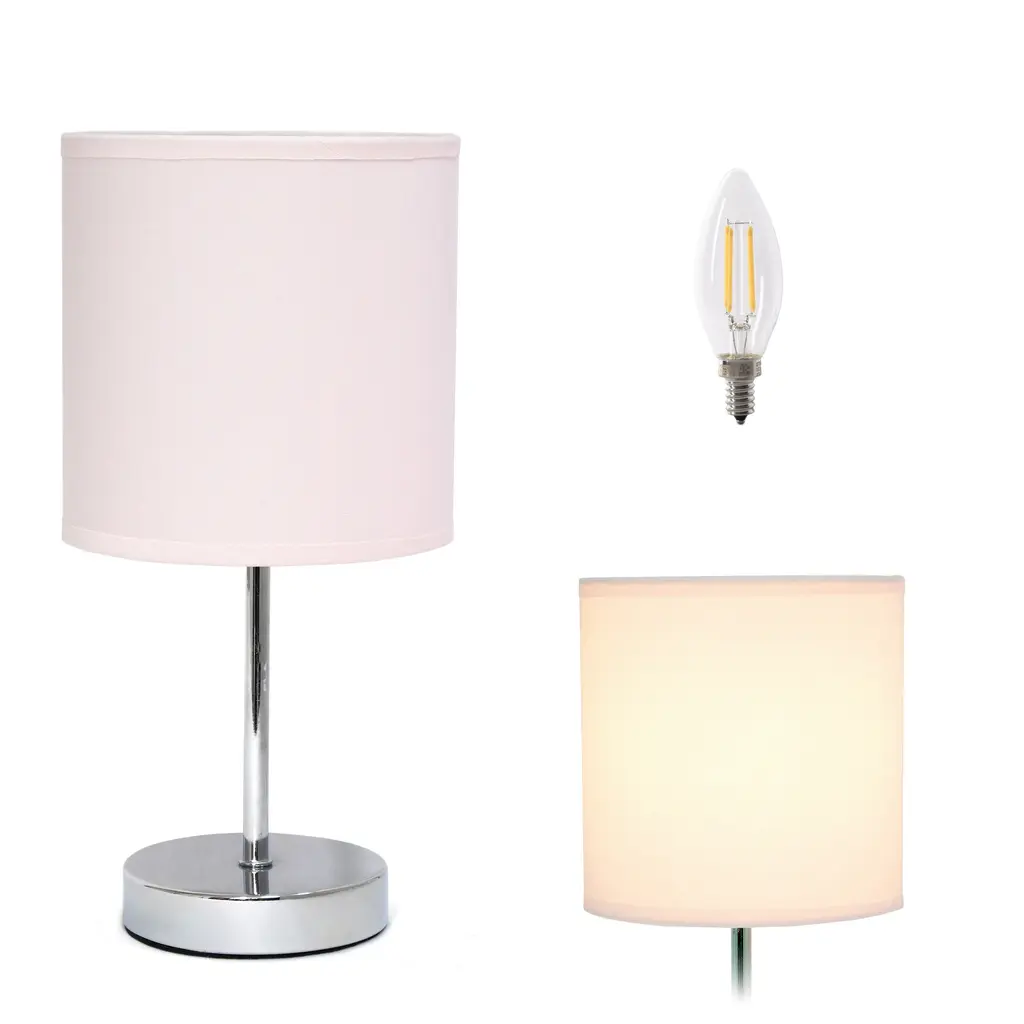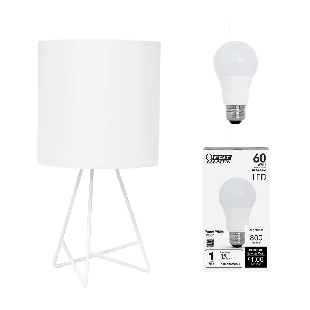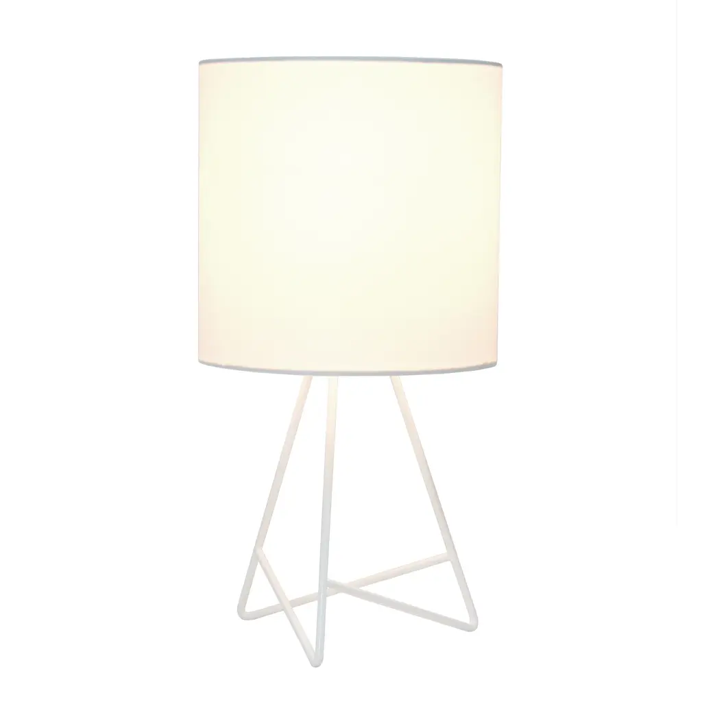 Bring function and fashion to any tabletop in your home with this modern table lamp. Equipped with the required LED bulb, the gold metal base showcases an open silhouette complemented by a white fabric drum shade. Perfect size for any room in your home! Illuminate your living room, bedroom, kids and teen rooms, college dorm, apartment, nursery, or offices with this modern table lamp with contemporary flair!Features: