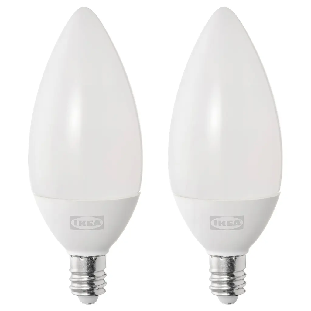 SOLHETTA LED bulb E12 250 lumen - chandelier/opal. LED light bulbs are both energy efficient and long-lasting, with a lifetime of approximately 25,000 hours which are two benefits that allow you to save money on both bulb replacements and electricity. The light bulb is not dimmable.