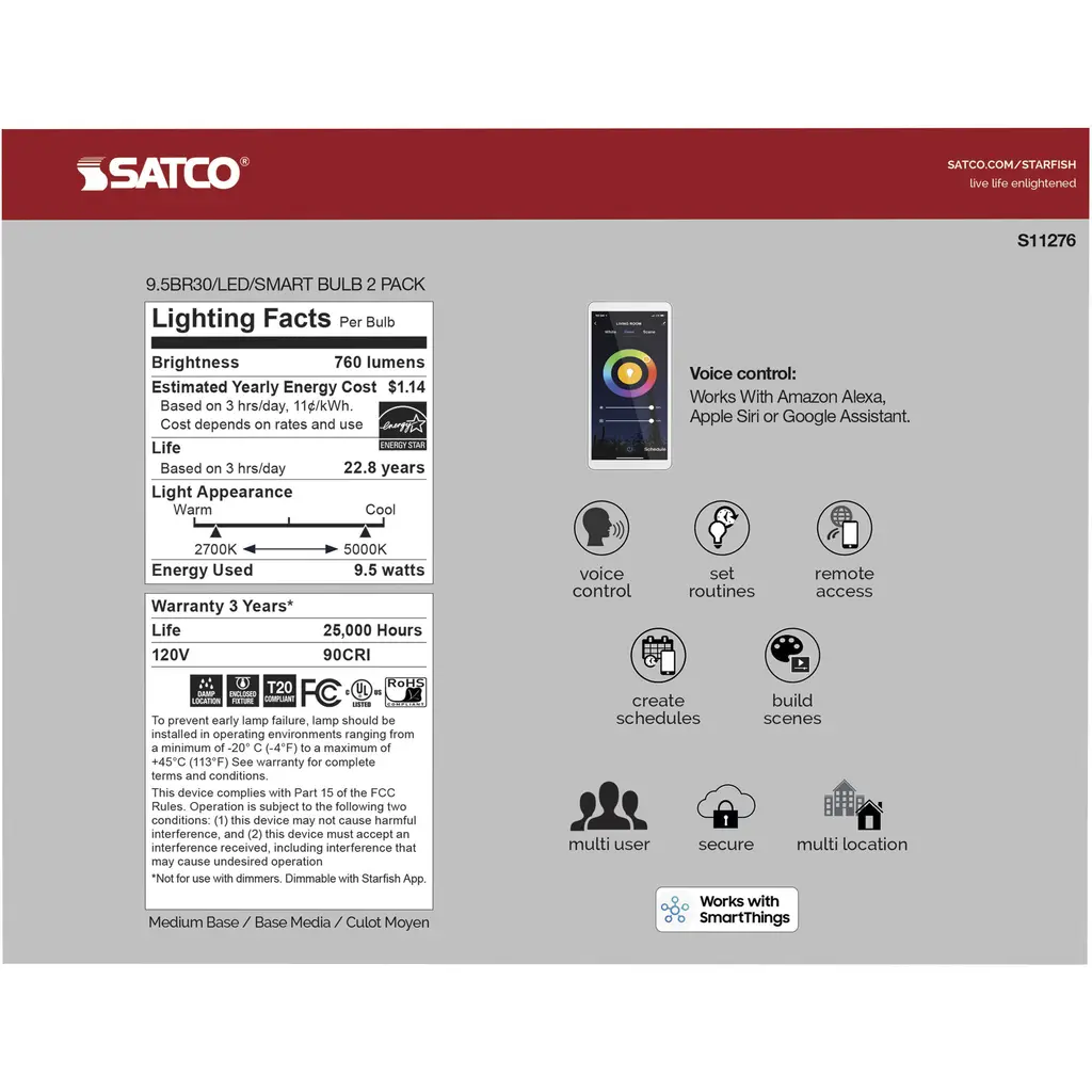 Starfish Led Br30 Medium 9.50 Watt 2700k-5000k Light Bulb
