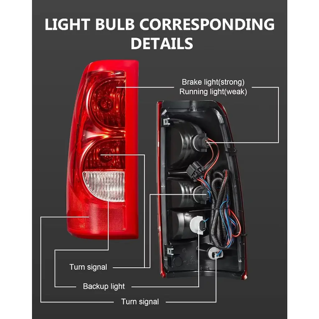Tail Light Assembly For 2003-2006 Chevy Silverado - Red/clear, W/bulb & Harness