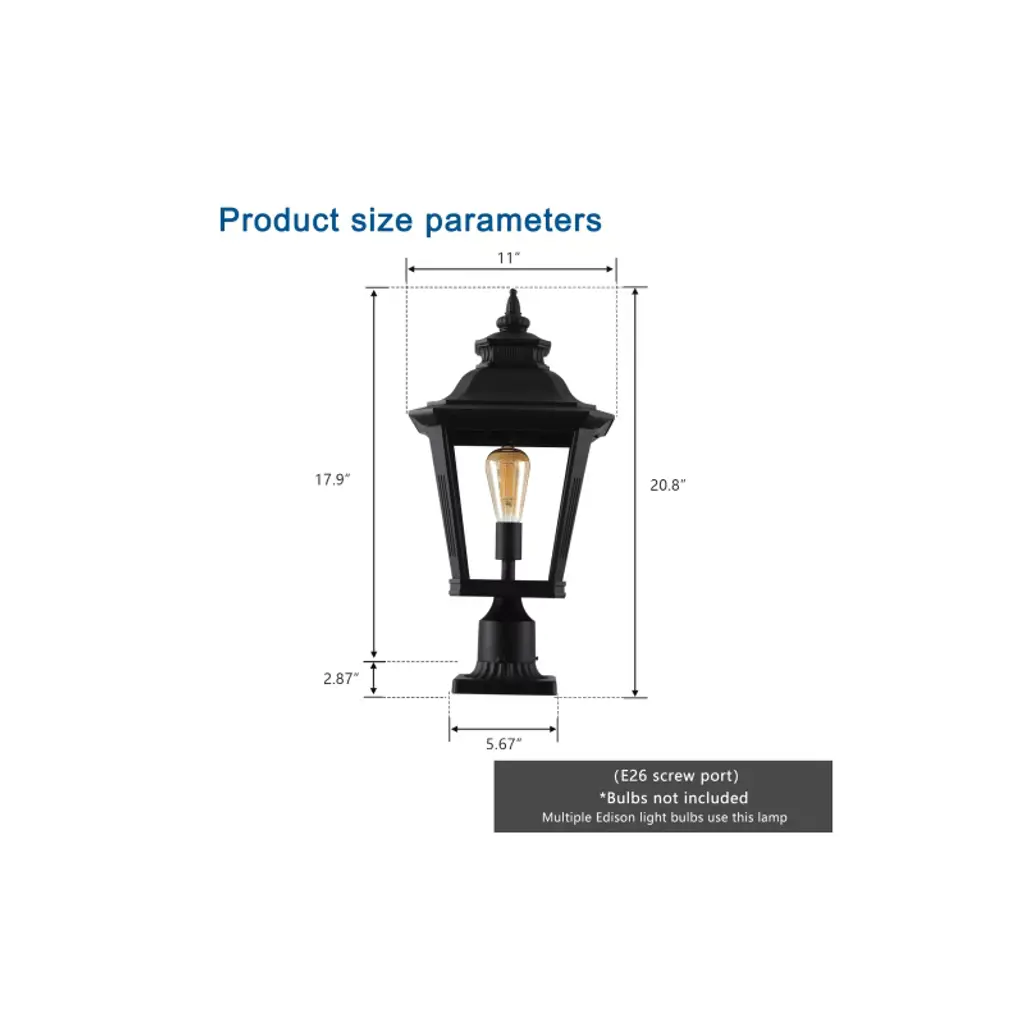 BUILT TO LAST - These outdoor post lights are built to last with reliable quality aluminum and weather-resistant design, rust-proof, waterproof, which is suitable for any weather conditions like, heavy rain, snowy, icing, hot weather, etc.Waterproof and RustproofWIDE APPLICATION - This retro styled matte black finish post lights can be a beautiful addition to your house, porch, patio, walkway, doorway, garden, garage or any other exterior and interior places.RETRO STYLE DESIGN - This exterior lights fixture adopts crafted matte black metal frame with clear glass, a simple but artistic look. create pleasant design that complements any outdoor patio porch backyard decor.EASY TO INSTALL - Post lamp is designed to be easy to assemble. Hardwired for quick and easy installation.